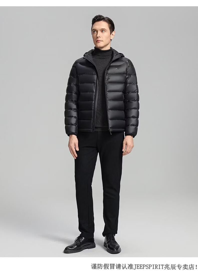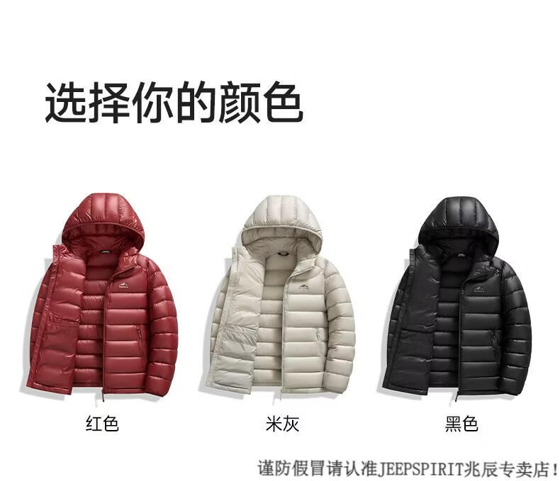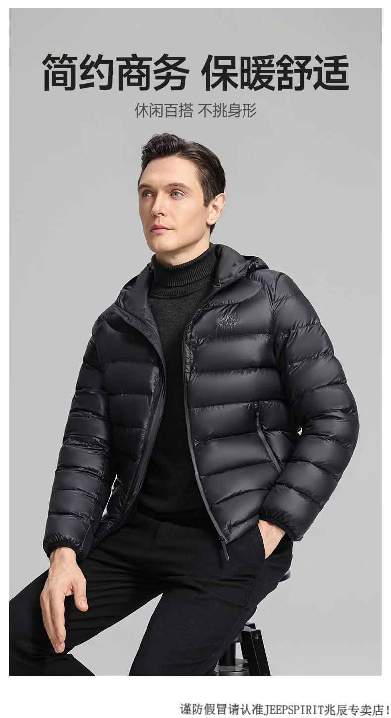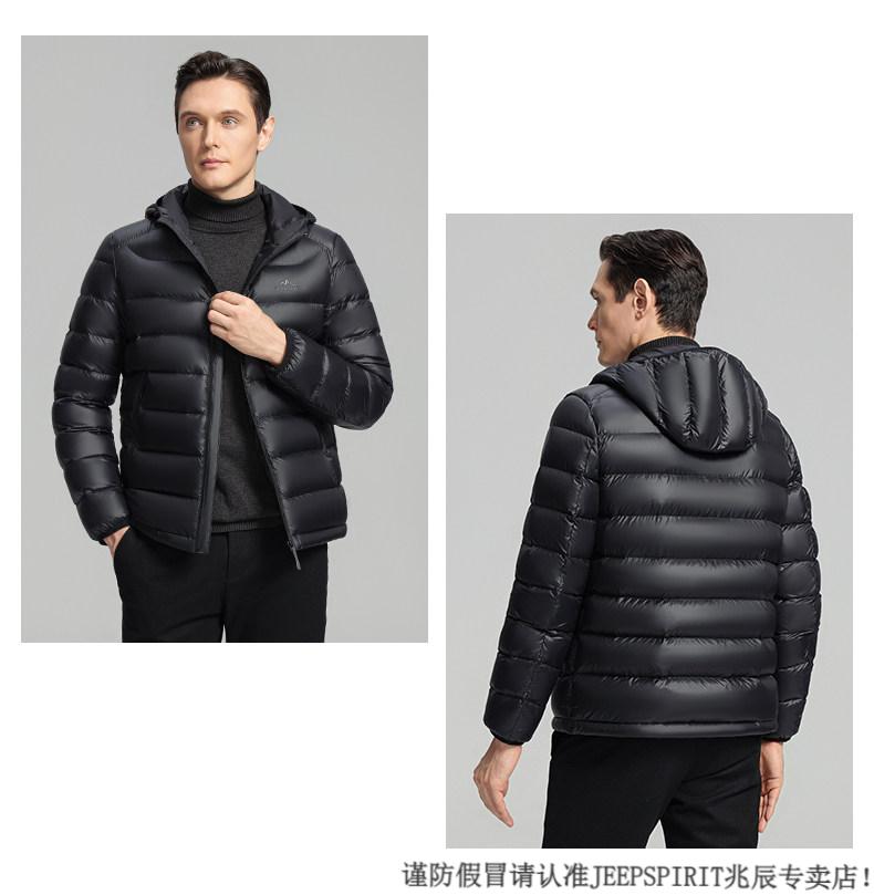JEEP SPIRIT High Filling Capacity Lightweight Down Jacket Men's Spare Ribs 2025 Winter New Style Warm Jacket Black S