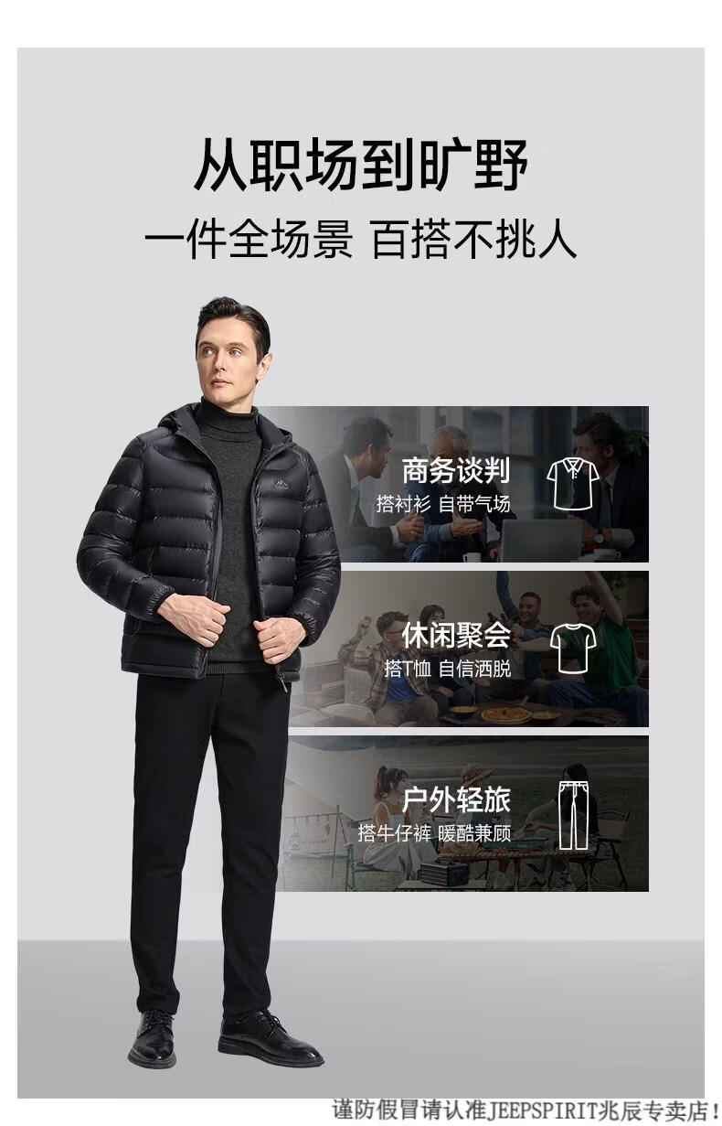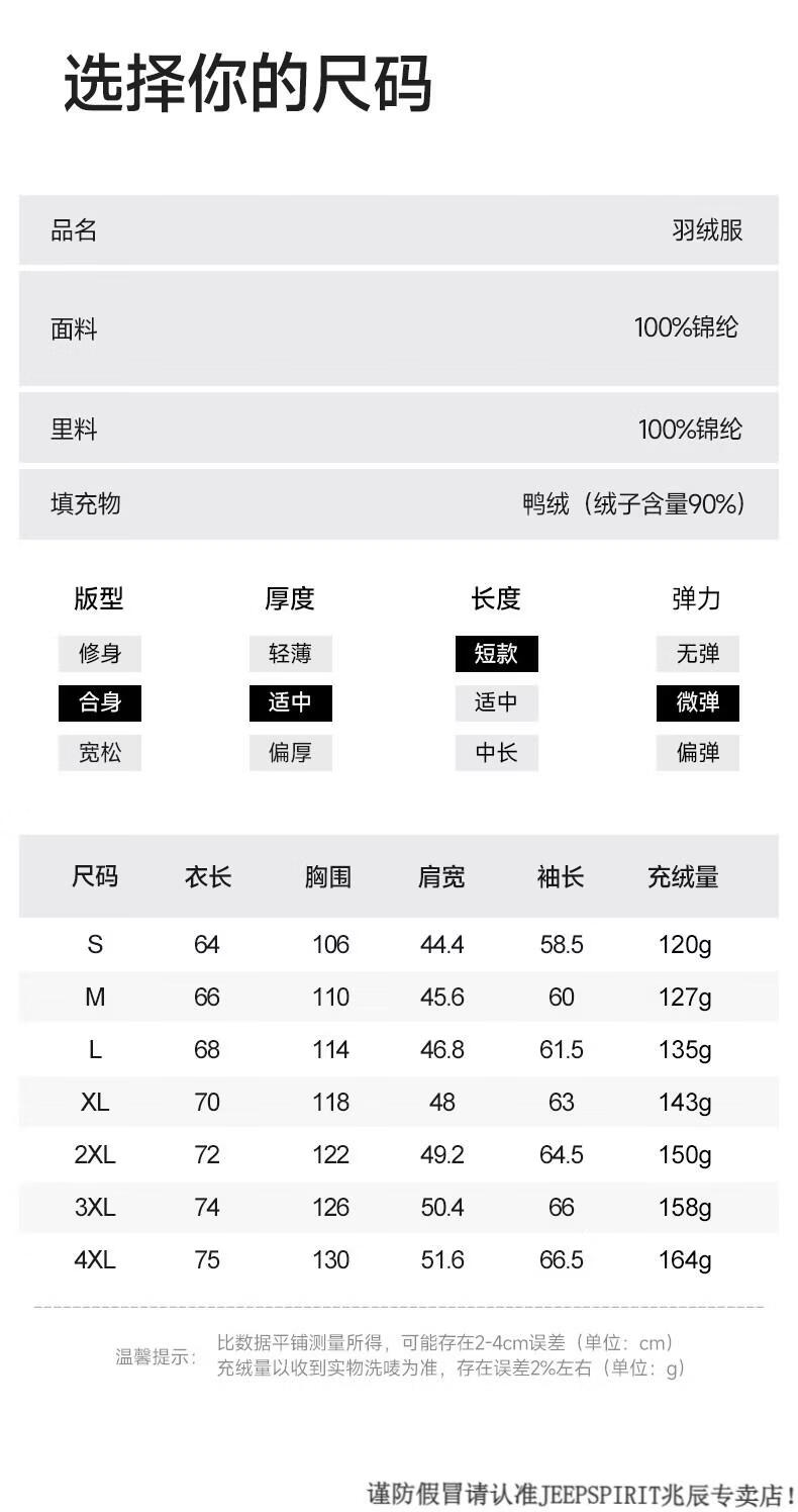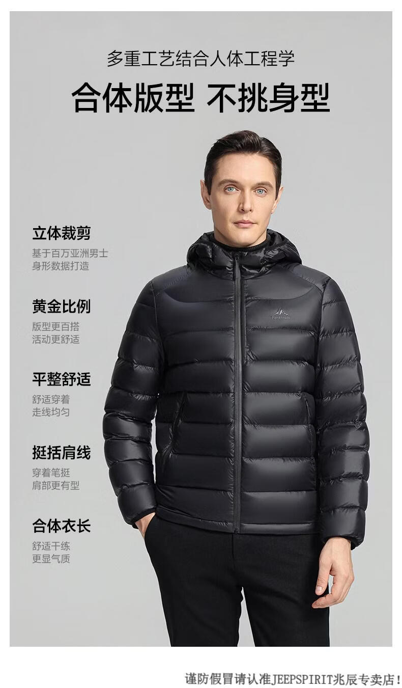 JEEP SPIRIT High Filling Capacity Lightweight Down Jacket Men's Spare Ribs 2025 Winter New Style Warm Jacket Black S