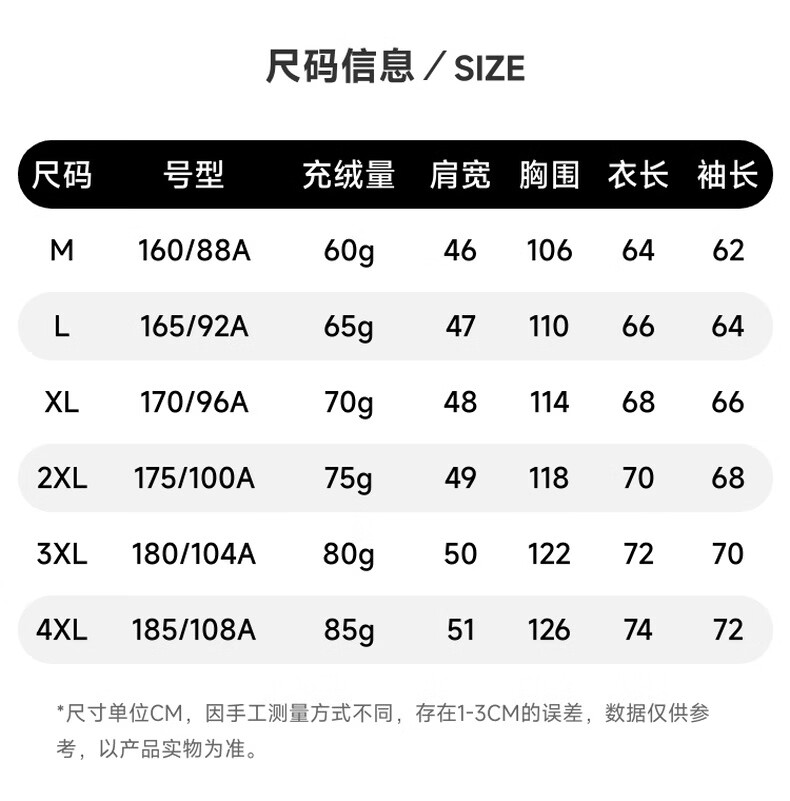 China (cm) 165 / 88-90 170 / 96-98 175 / 108-110 180 / 118-122 185 / 126-130