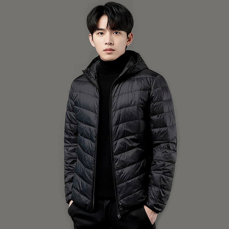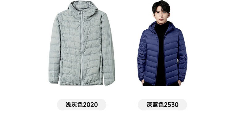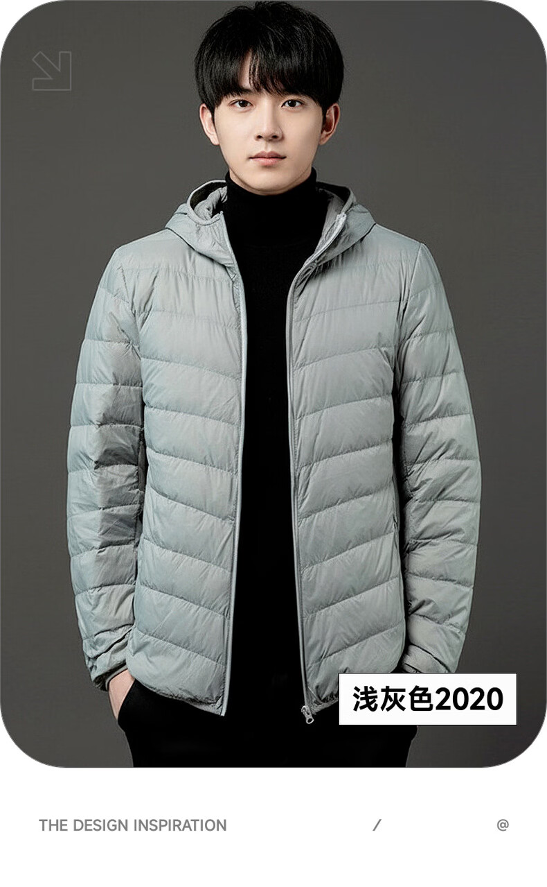 Jeanswest Jeanswest Мужская повседневная теплая пуховая куртка с капюшоном 2026 Весенняя новая простая однотонная пуховая куртка LR Светло-серая 2020 M 160/88A