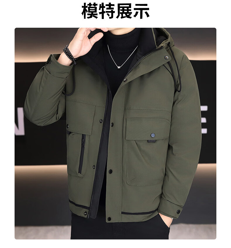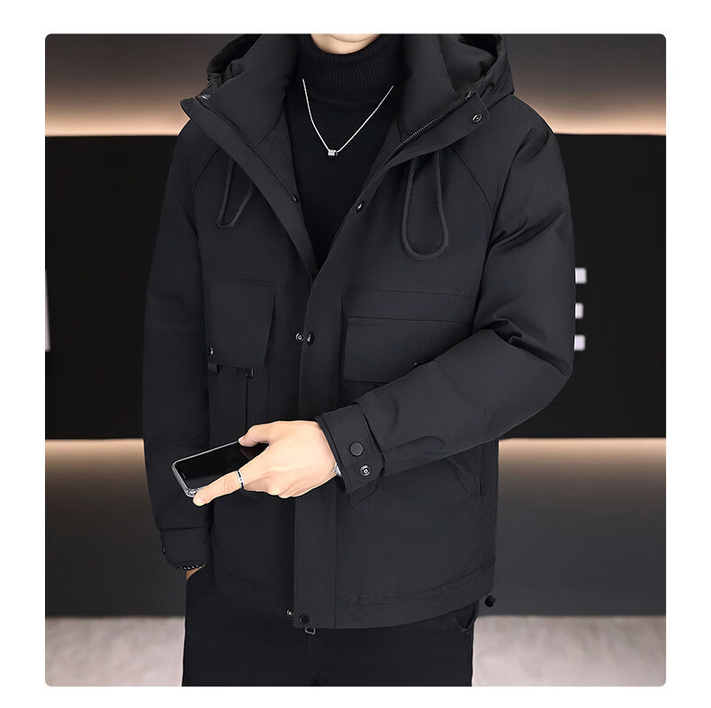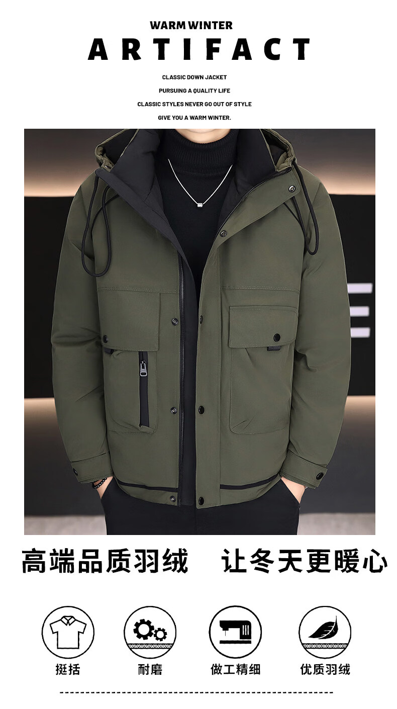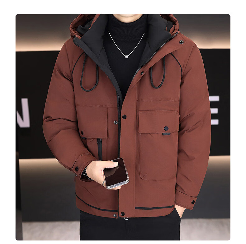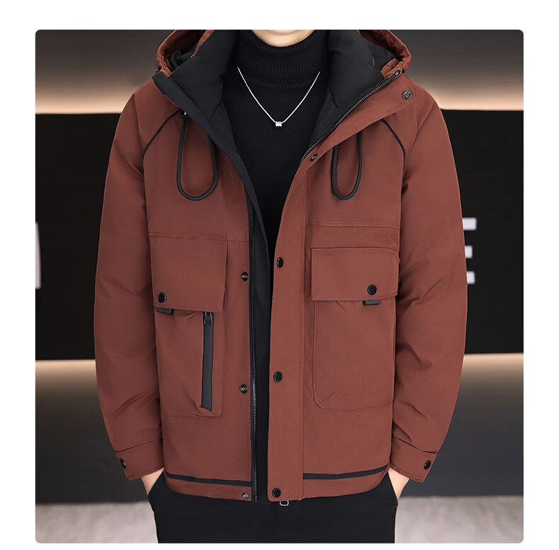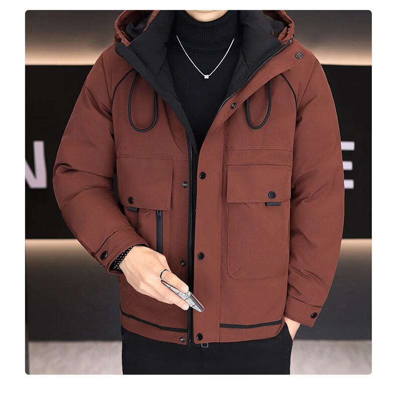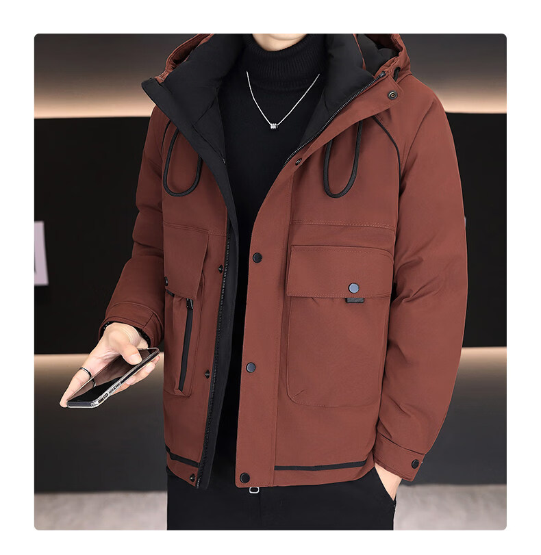 KBXNG劲霸新款羽绒服男士冬季连帽高端防寒服户外加厚保暖短款工装外套 酒红色 M
