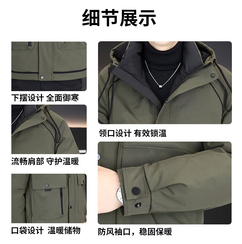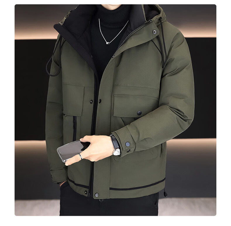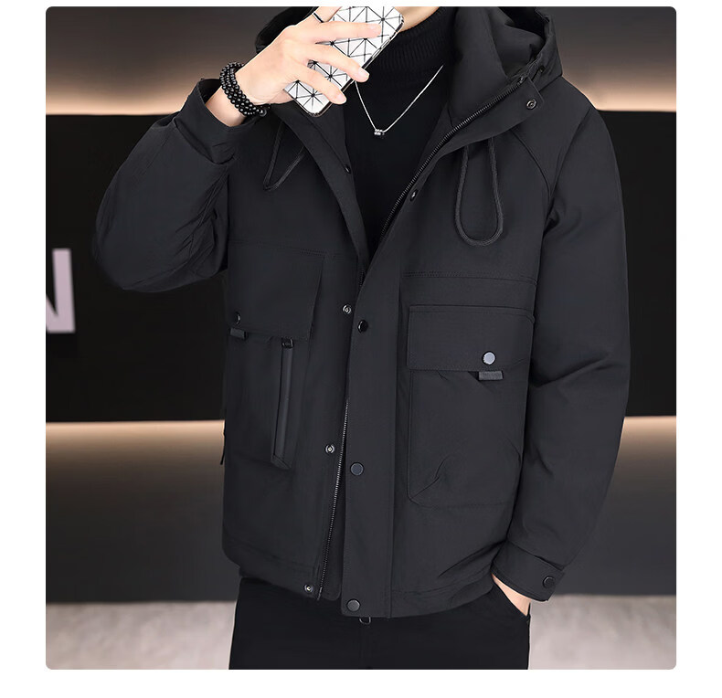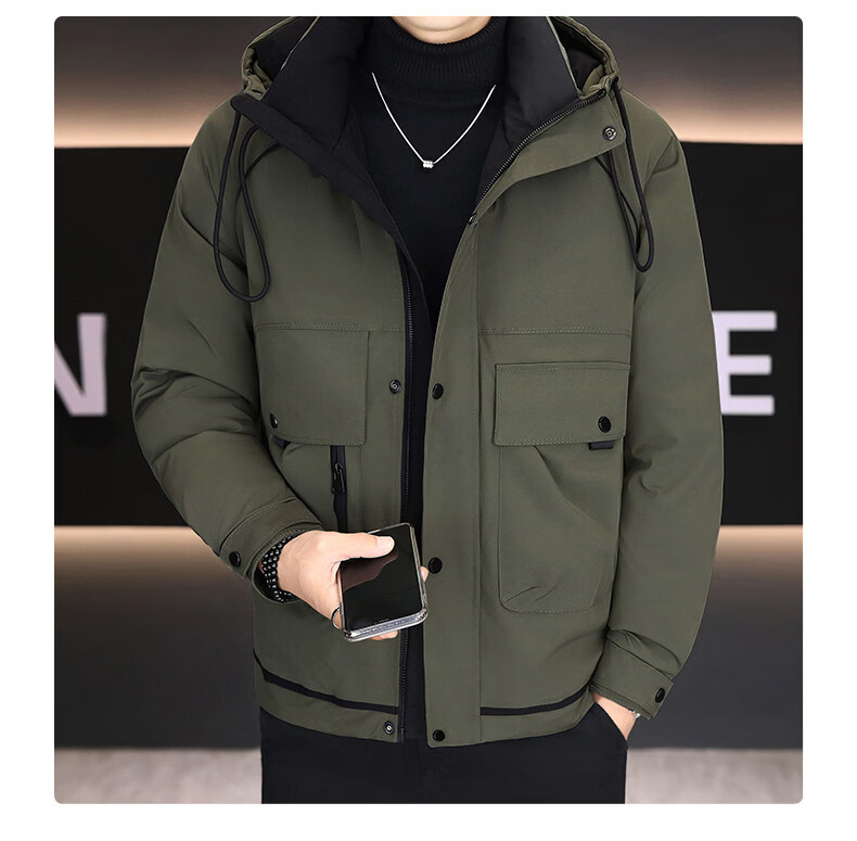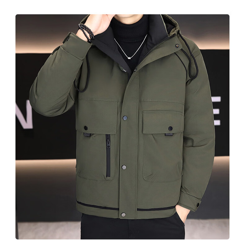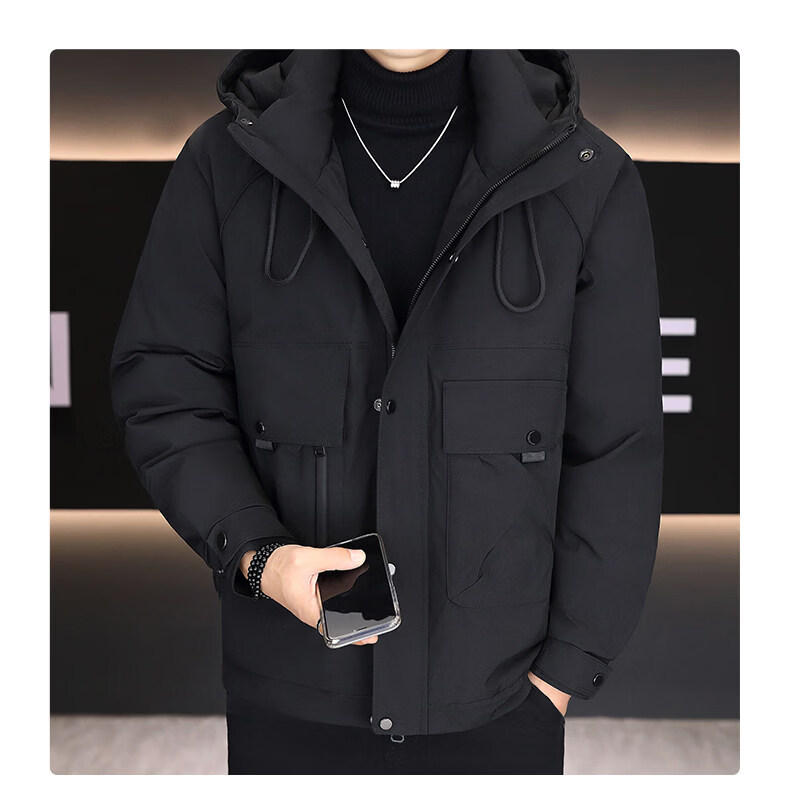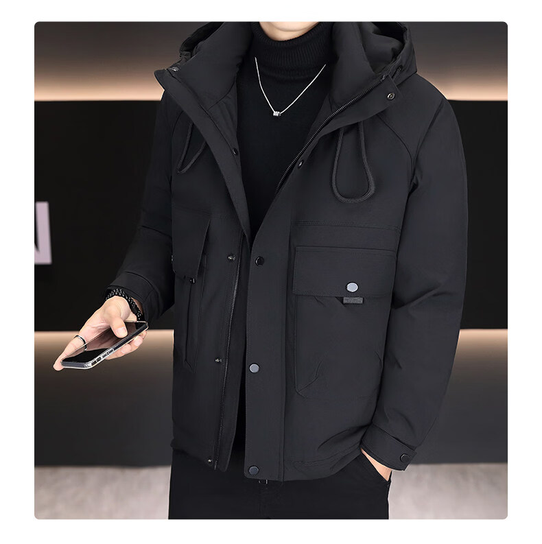 KBXNG劲霸新款羽绒服男士冬季连帽高端防寒服户外加厚保暖短款工装外套 酒红色 M