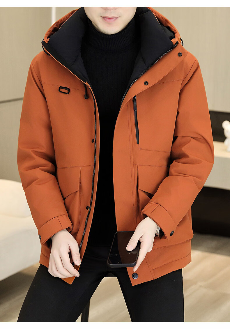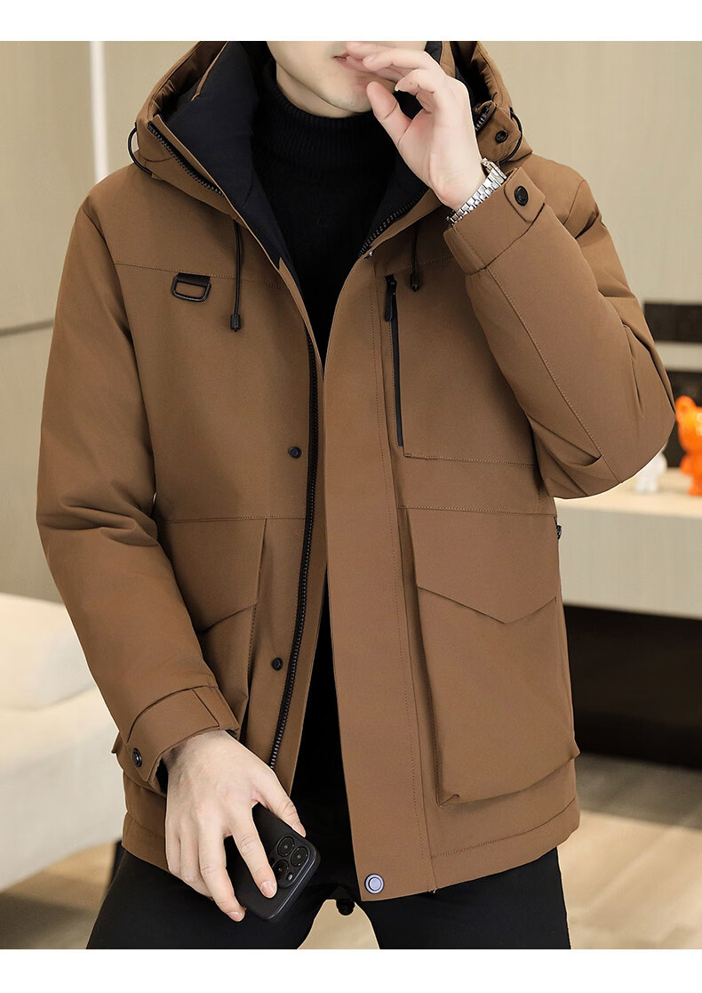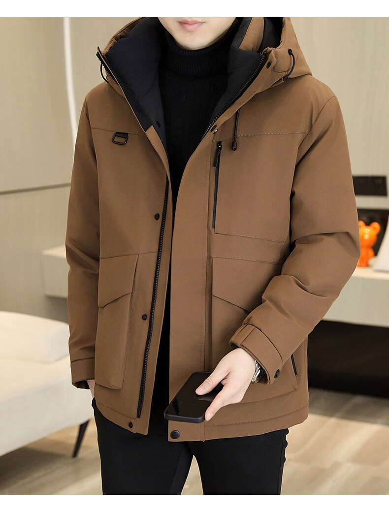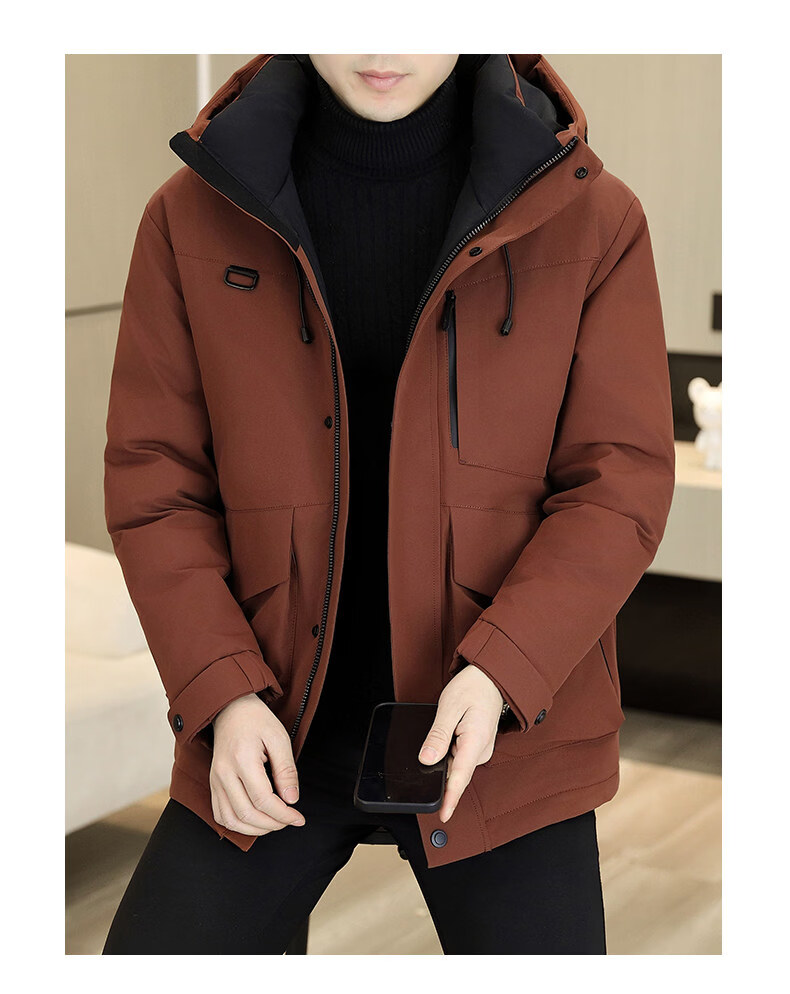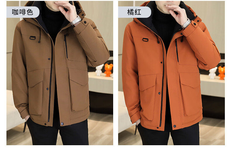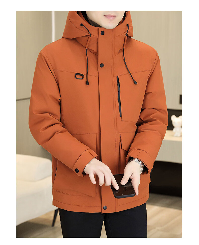 KBXNG劲霸多口袋工装羽绒服男士冬季户外机能连帽冲锋衣加厚保暖防寒服 酒红色 4XL 175到190斤