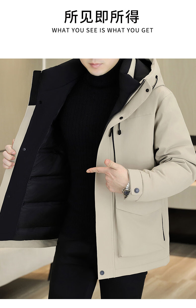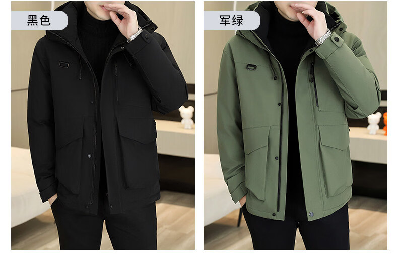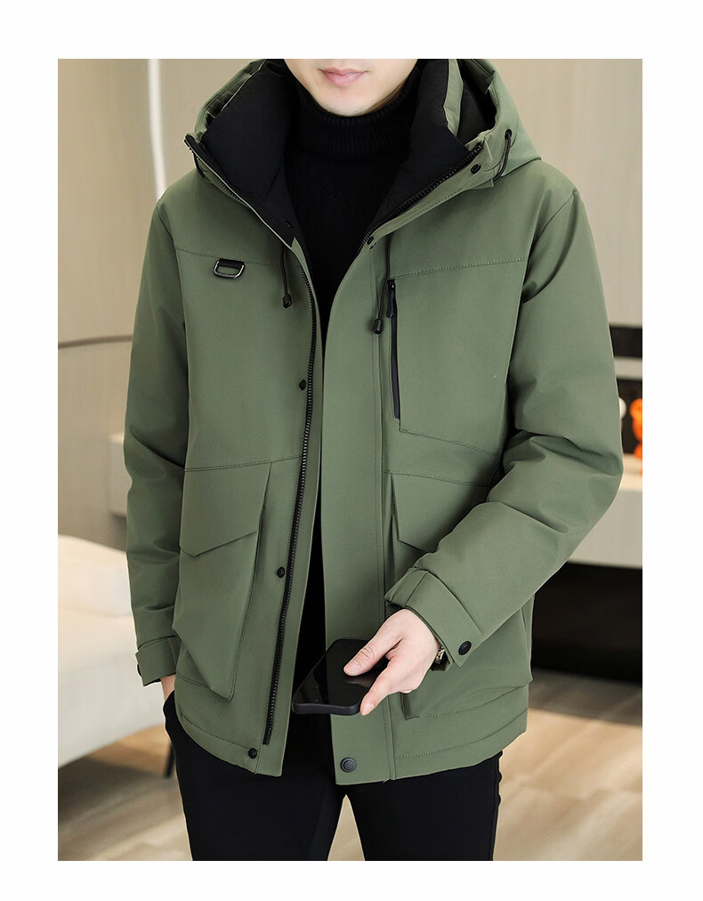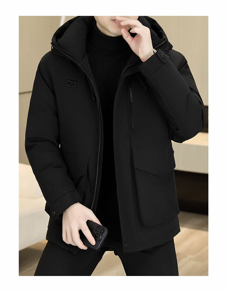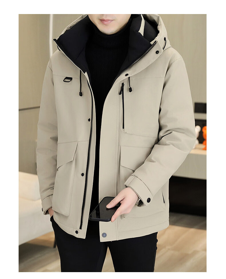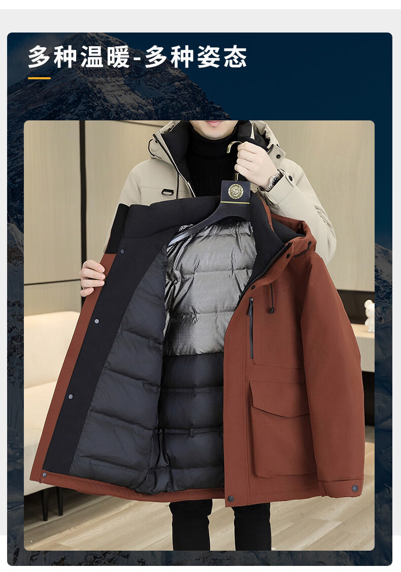KBXNG劲霸多口袋工装羽绒服男士冬季户外机能连帽冲锋衣加厚保暖防寒服 酒红色 4XL 175到190斤
