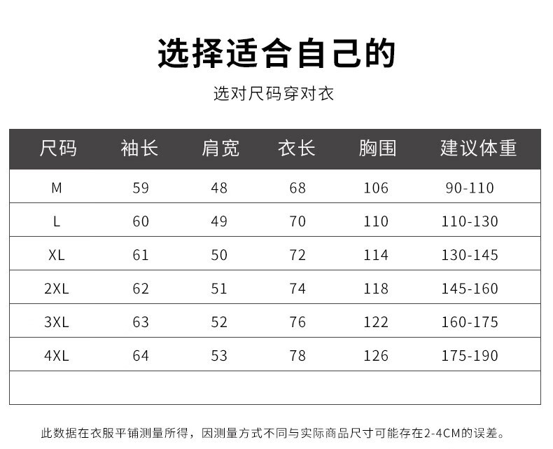 China (cm) 165 / 88-90 170 / 96-98 175 / 108-110 180 / 118-122 185 / 126-130
