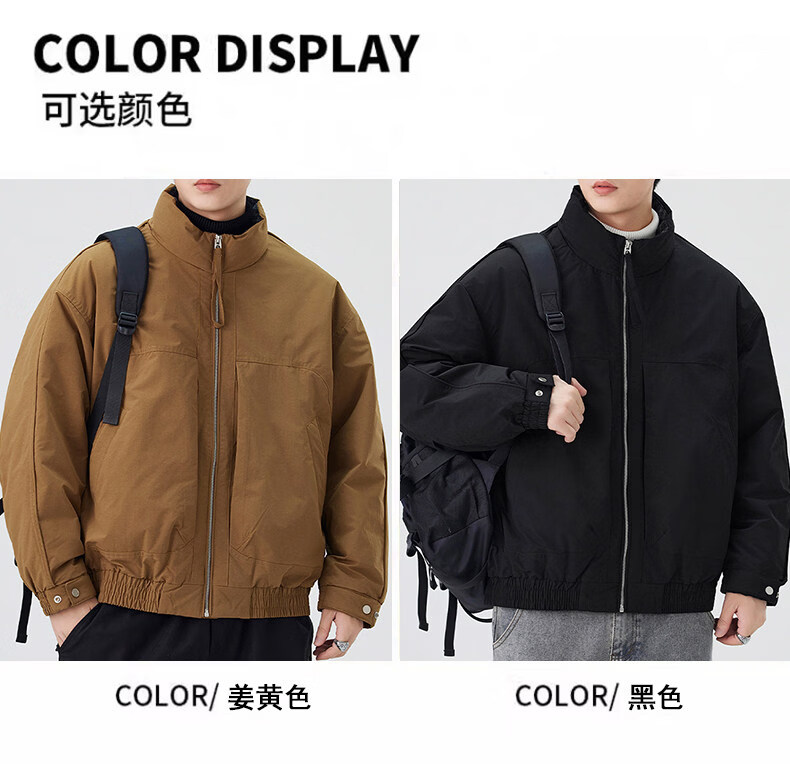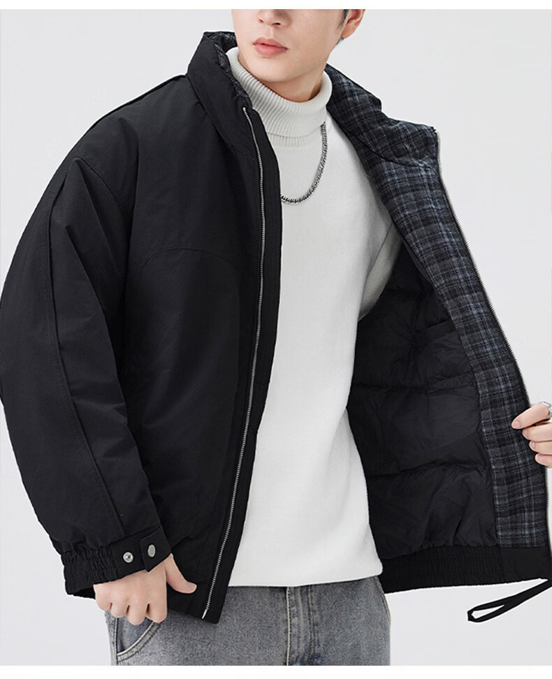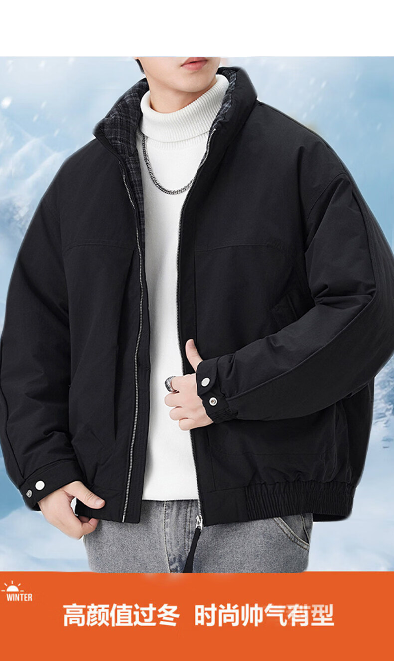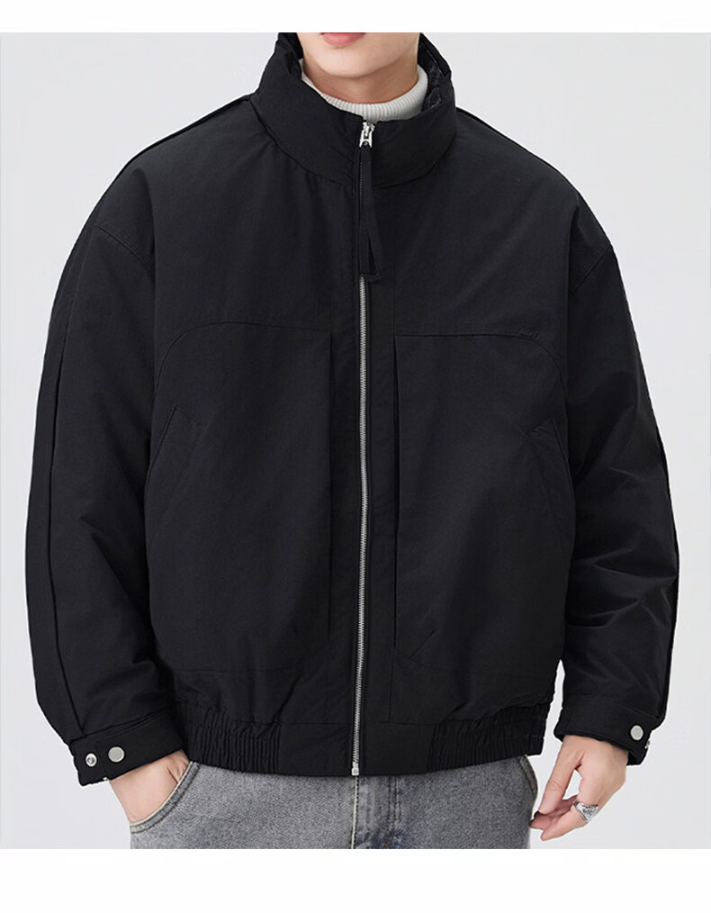 KBXNG Jinba Мужской пуховик с коротким воротником-стойкой, зимняя модная красивая свободная широкая куртка, утепленная теплая куртка черного цвета L