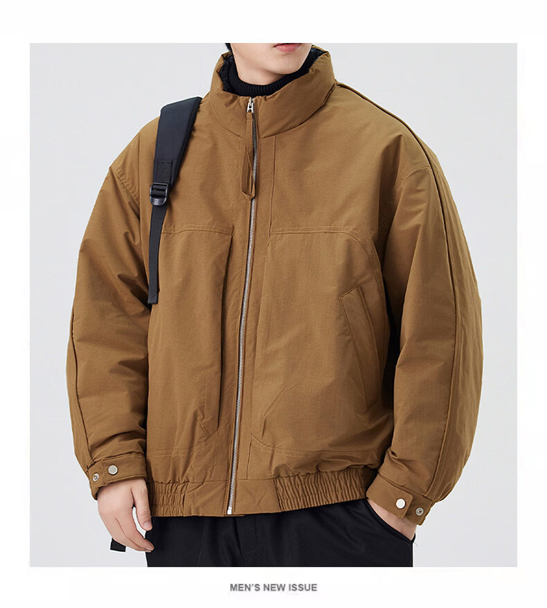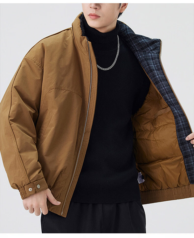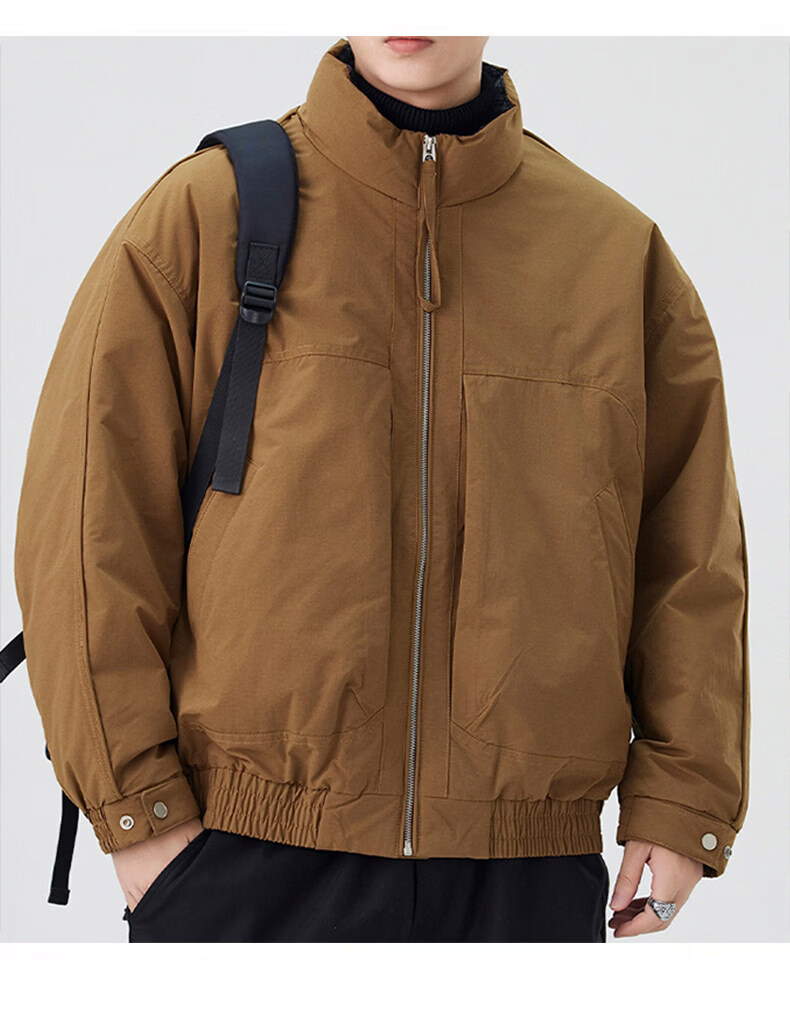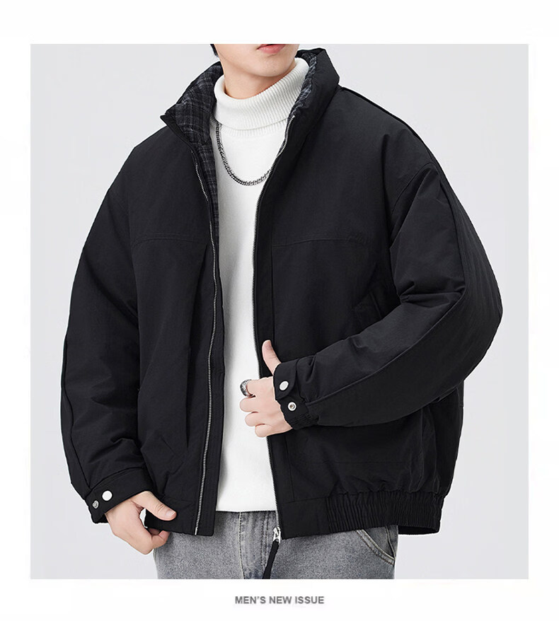 KBXNG Jinba Мужской пуховик с коротким воротником-стойкой, зимняя модная красивая свободная широкая куртка, утепленная теплая куртка черного цвета L
