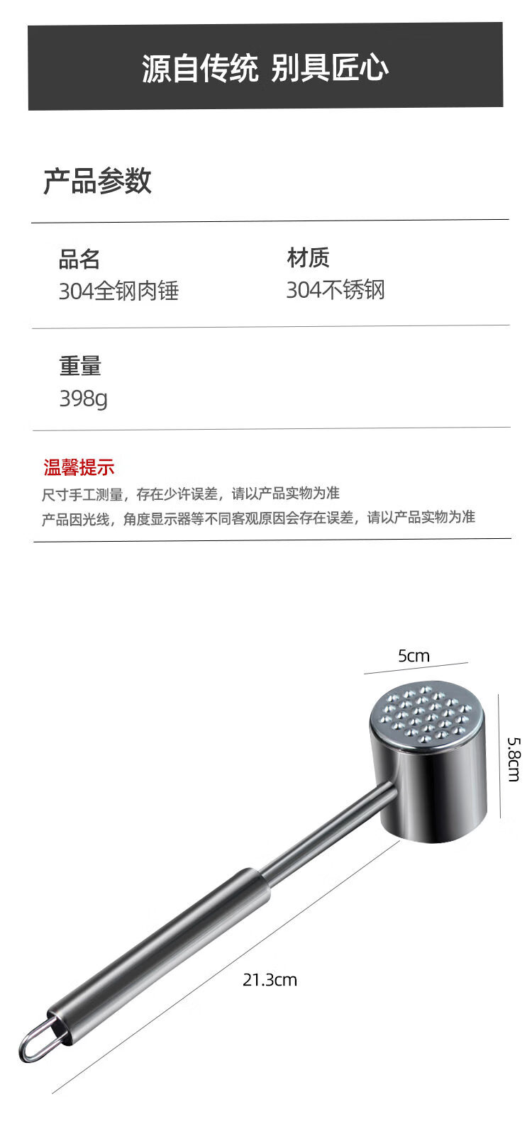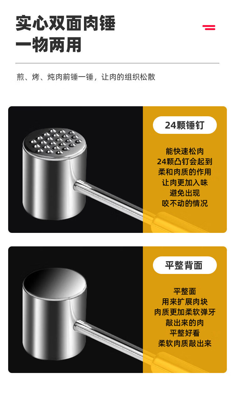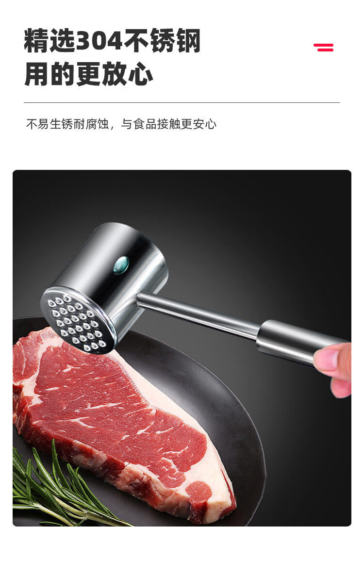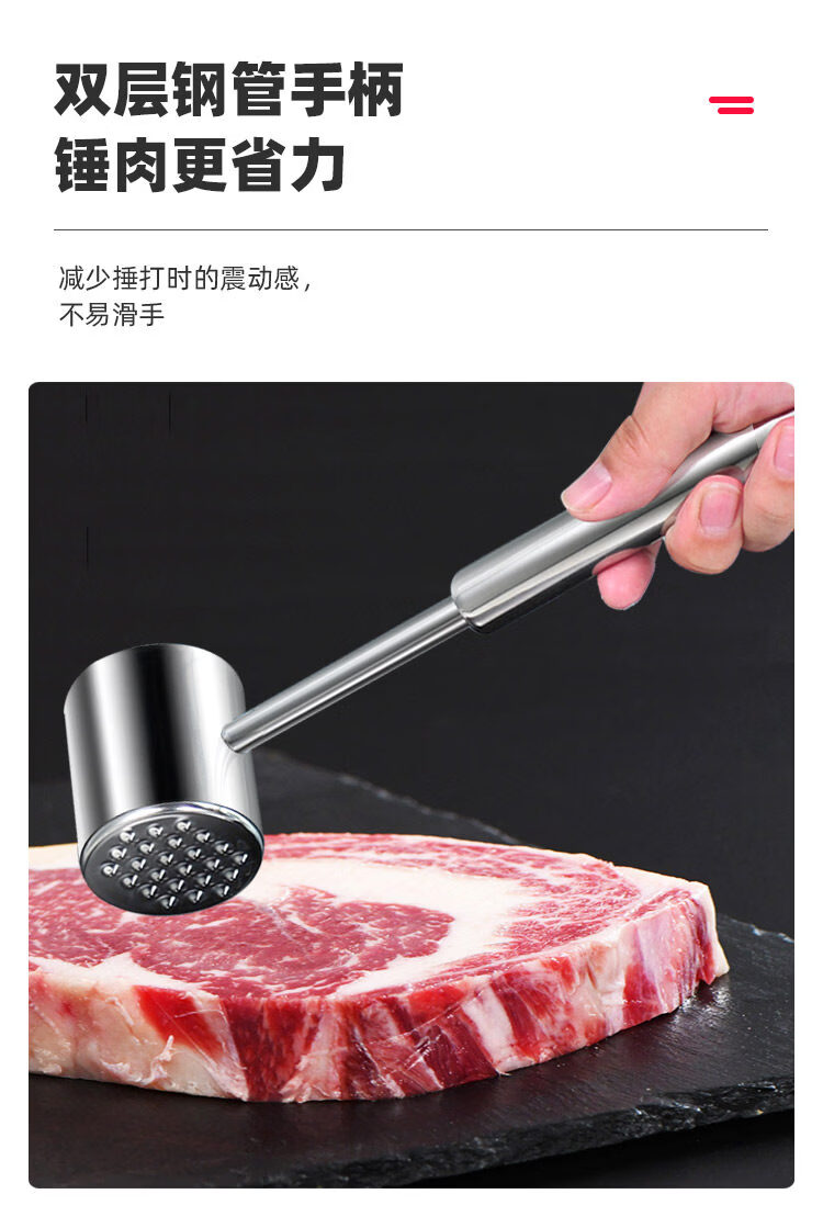 OUOETY牛肉牛排敲肉锤松肉锤厨房家用拍牛排锤子嫩肉断筋神器工具敲打神 304全钢肉锤+电动胡椒研磨器
