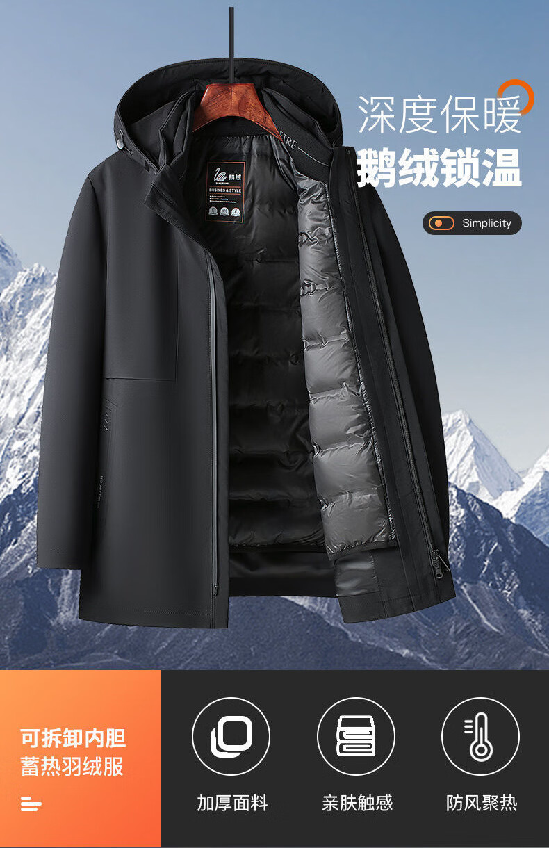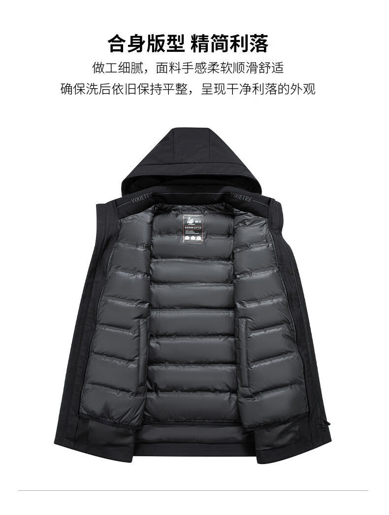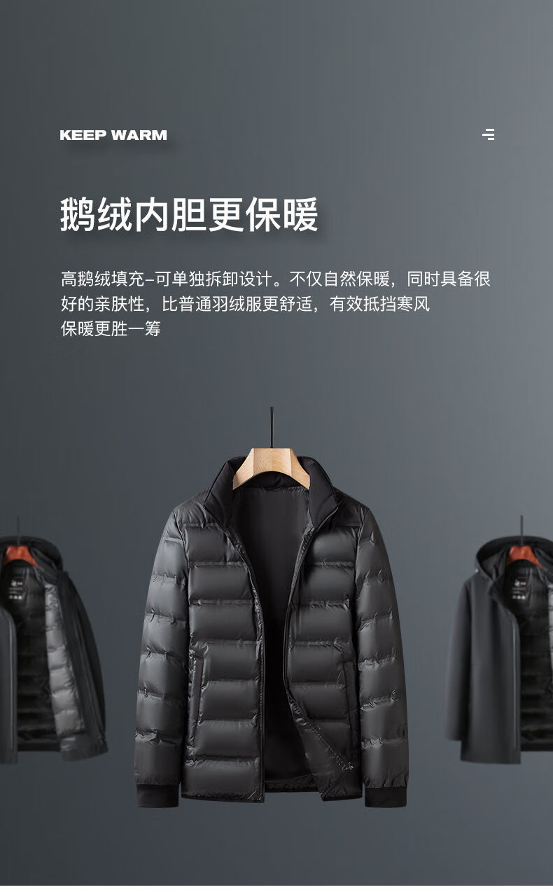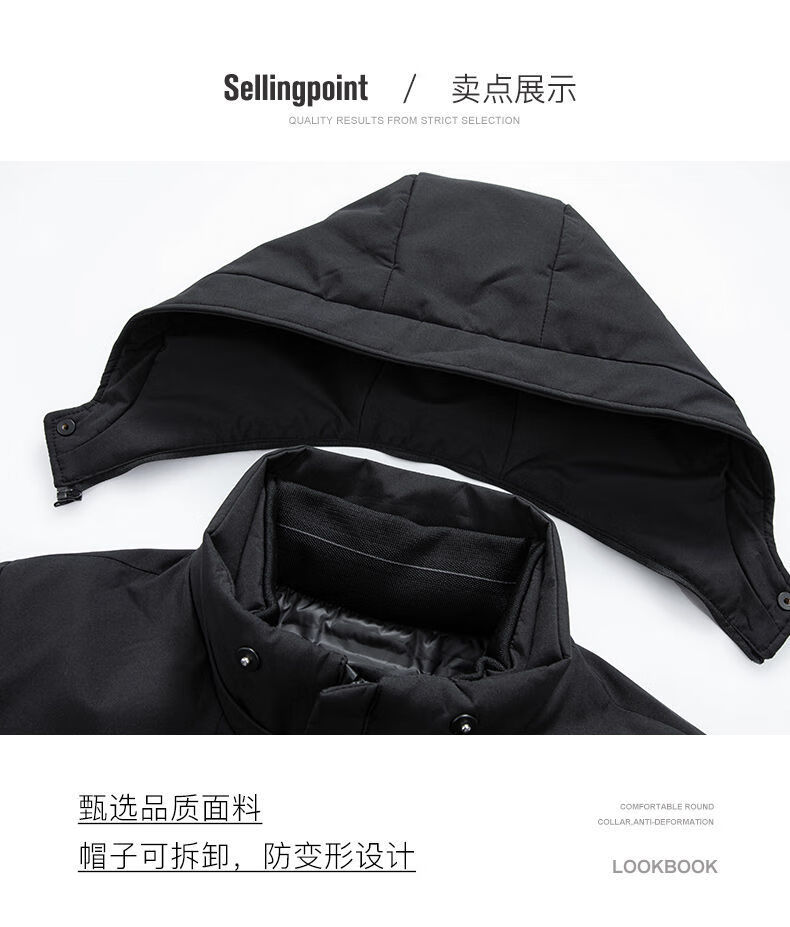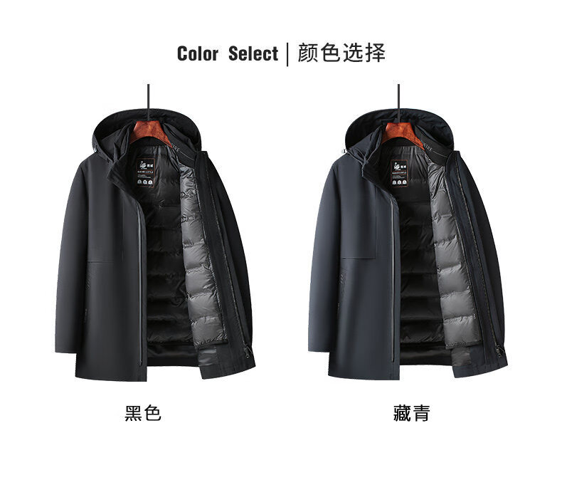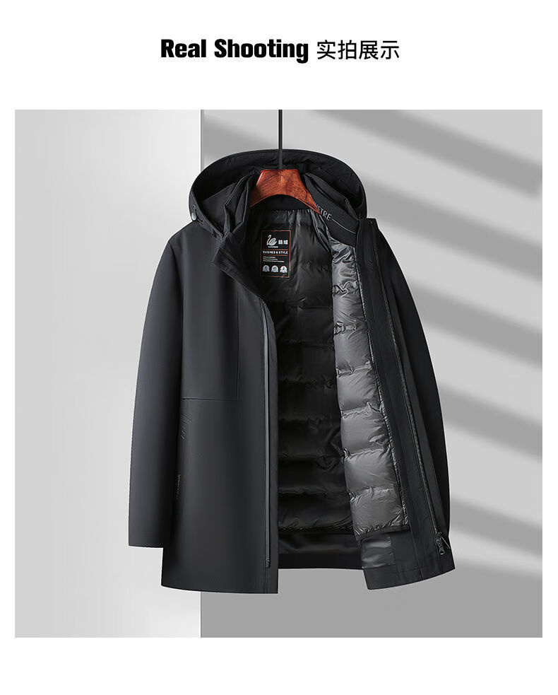 ROMON Dad's New Down Jacket Men's Removable Liner Mid-Length 90 New National Standard White Goose Down Thickened Winter Outer Black M 170/