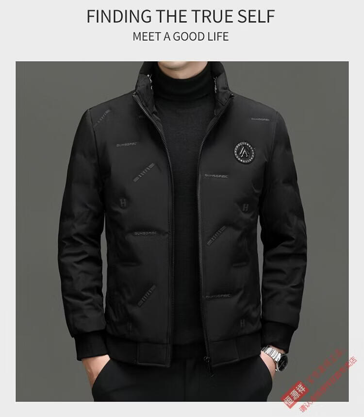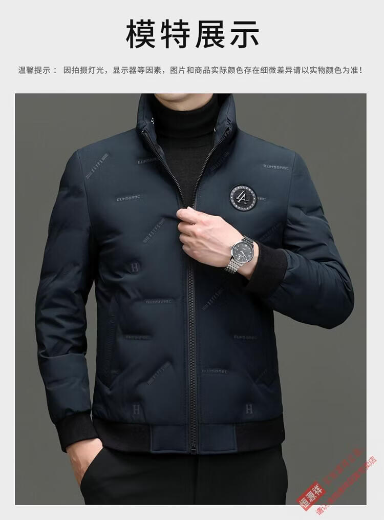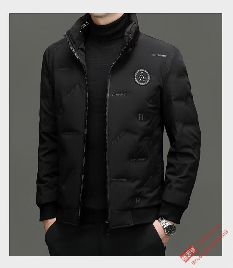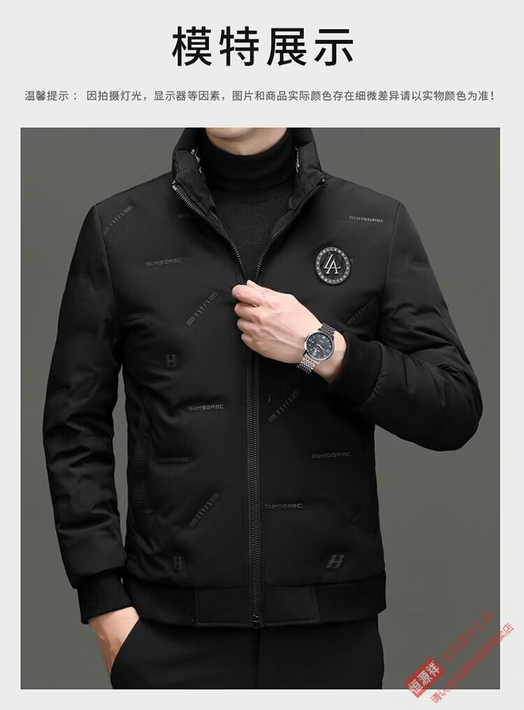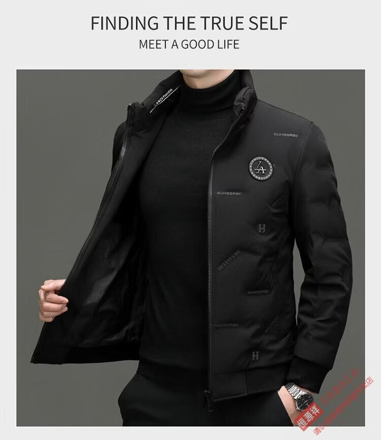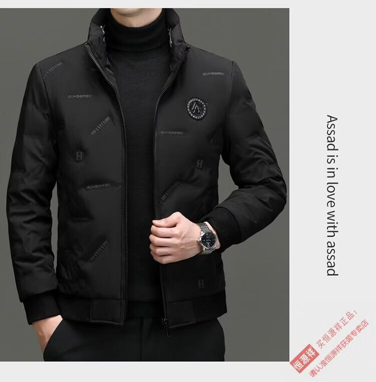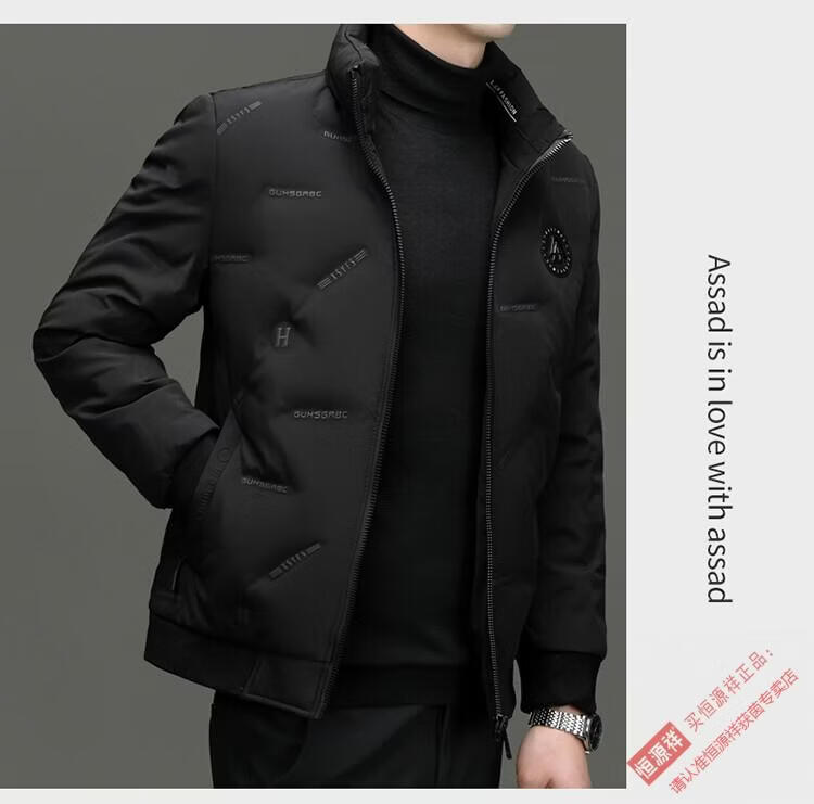 Hengyuanxiang middle-aged men's 90% white duck down down jacket business casual stand-up collar short autumn and winter cold-proof thermal jacket black M 170