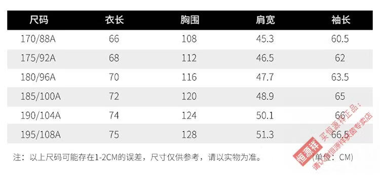 China (cm) 165 / 88-90 170 / 96-98 175 / 108-110 180 / 118-122 185 / 126-130