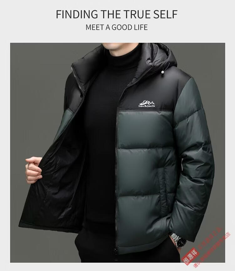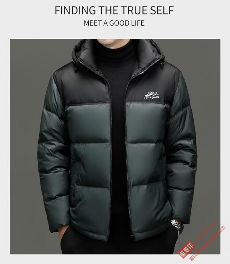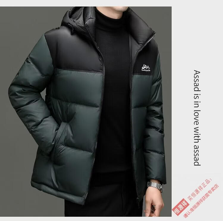 Hengyuanxiang 90% down jacket men's short high-fill down jacket 2026 winter new volcano thickened anti-extreme cold jacket green 4XL 195