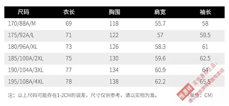 China (cm) 165 / 88-90 170 / 96-98 175 / 108-110 180 / 118-122 185 / 126-130
