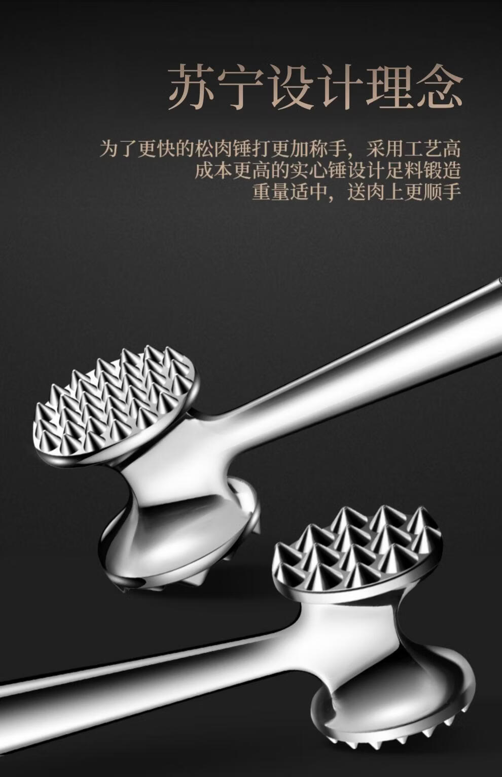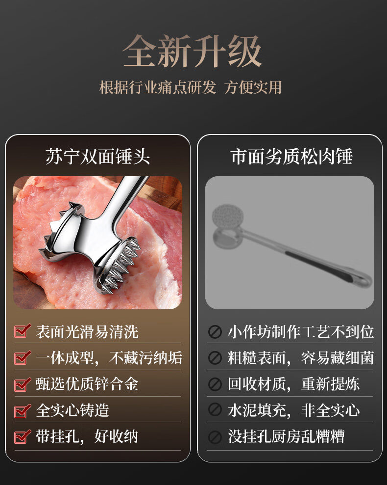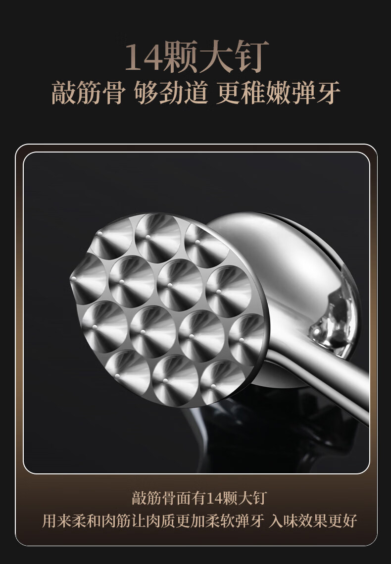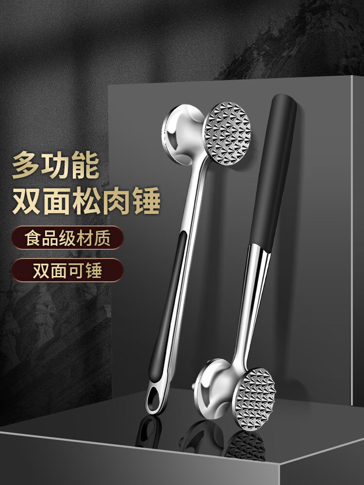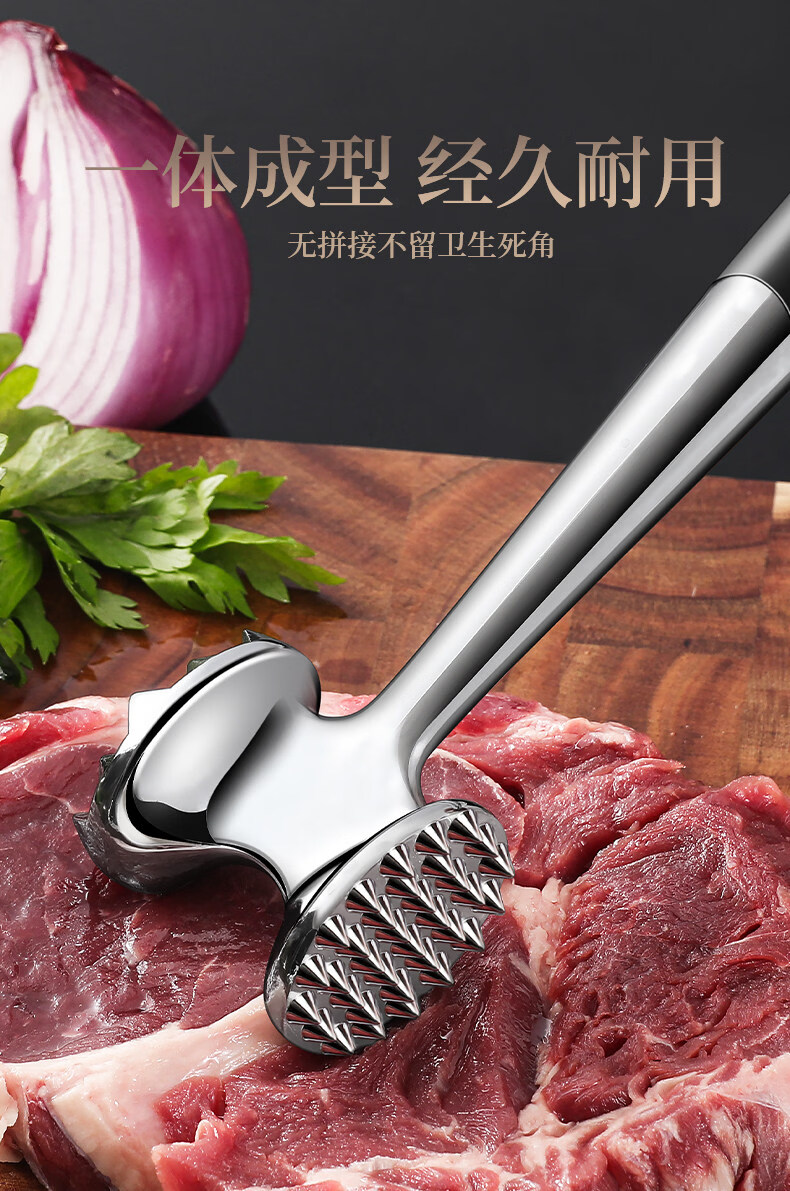 Tuojin 304 Stainless Steel Meat Tenderizer Home Steak Artifact 2297 Oval Model Double-Sided Meat Tenderizer + Hook + Small Oil Brush