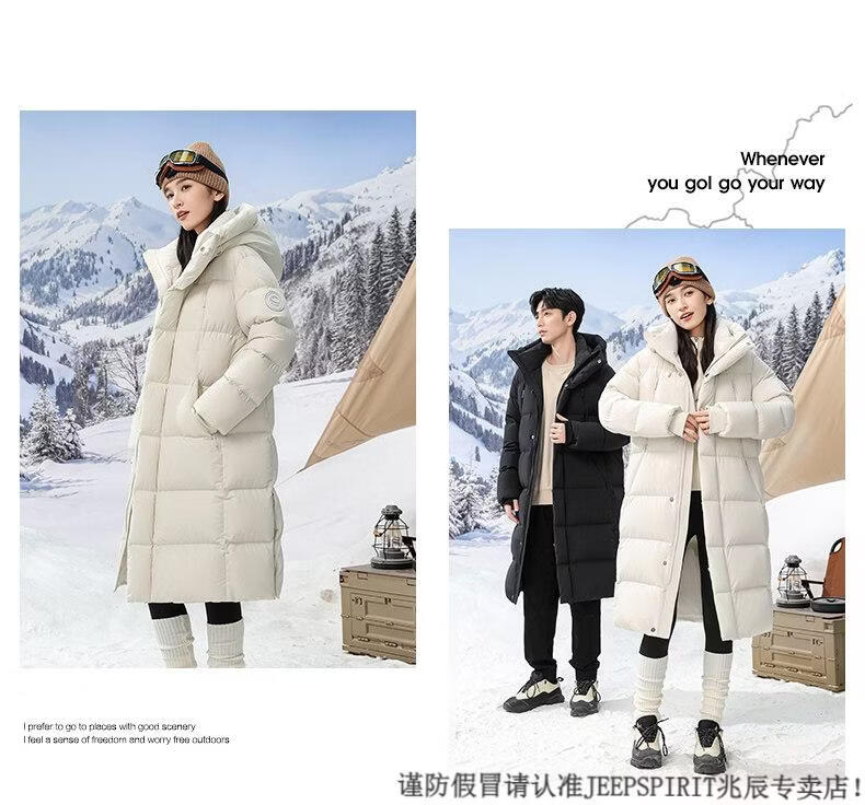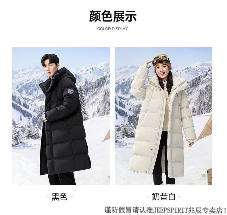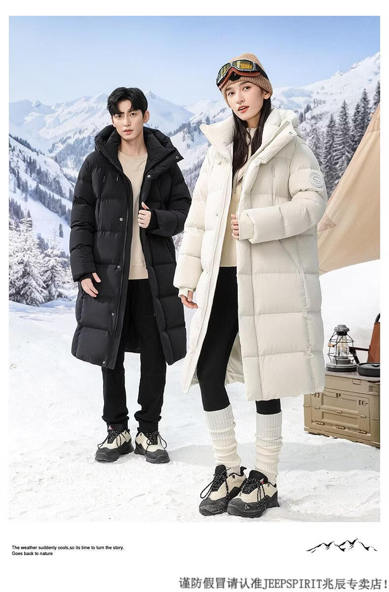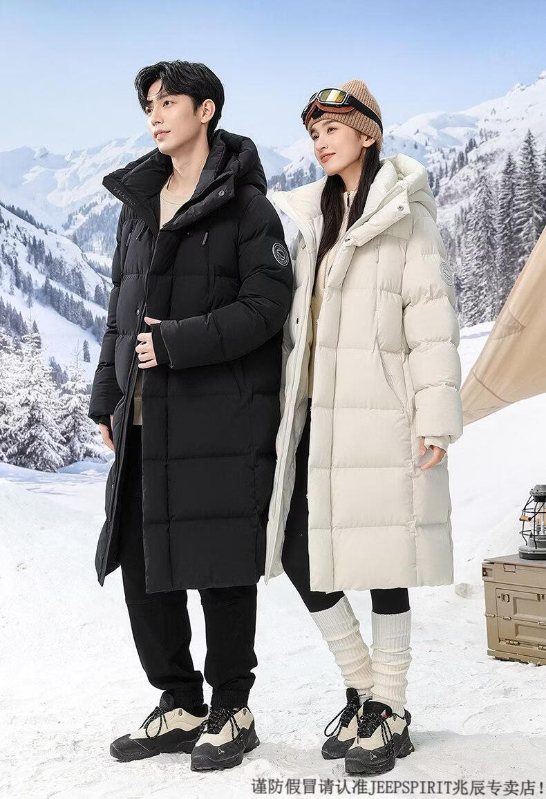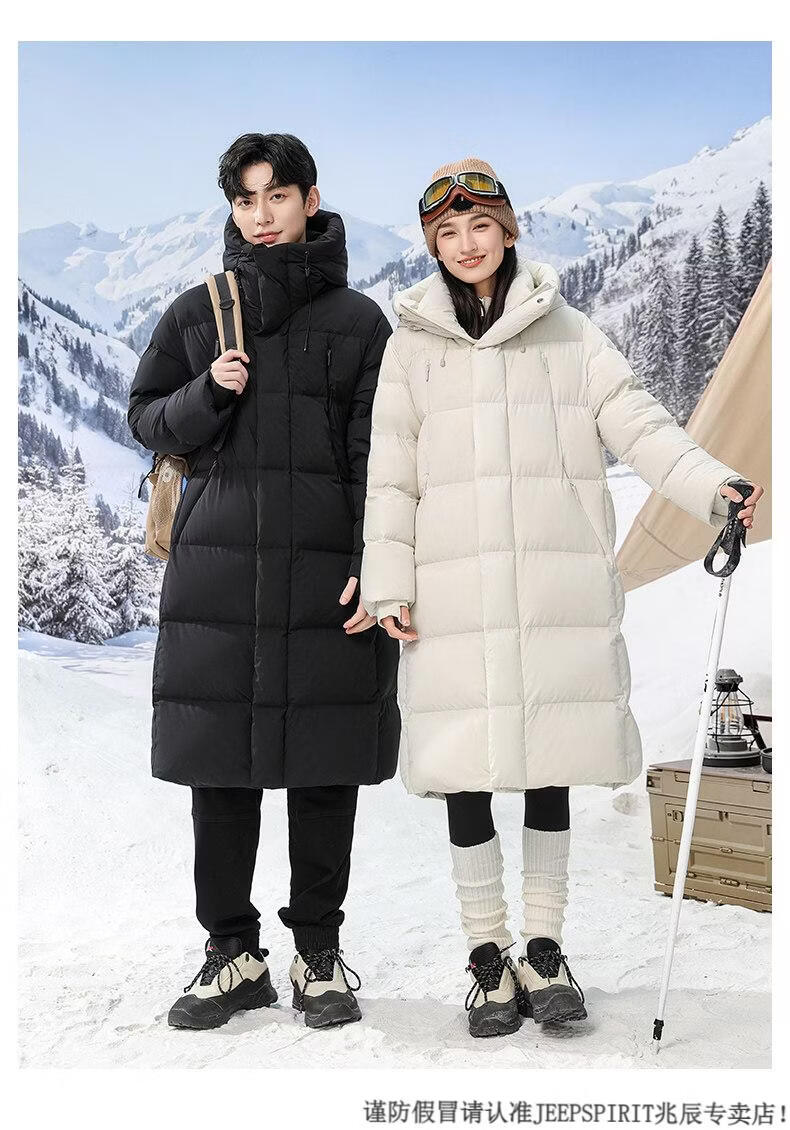 JEEP SPIRIT 300+ Пуховик с высоким наполнением Новая пара Пуховик для экстремальных холодов для мужчин и женщин Длинная куртка выше колена Northeast Минус 40 градусов Черный 82652 XS 100 Jin Jin весит менее 0,5 кг