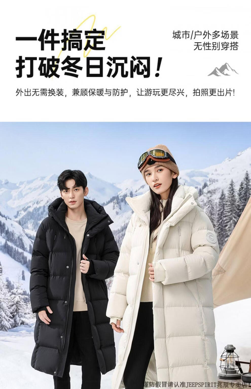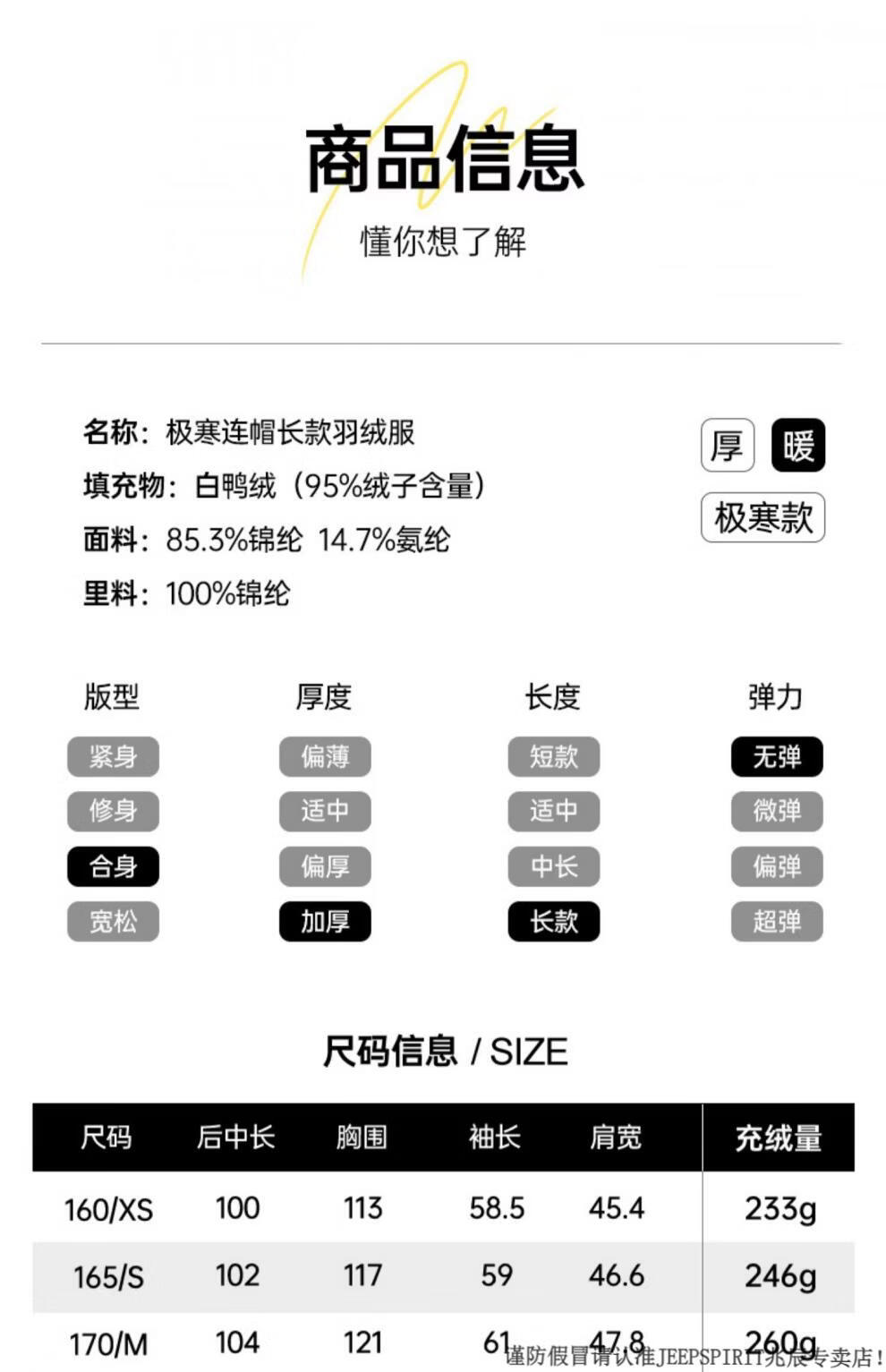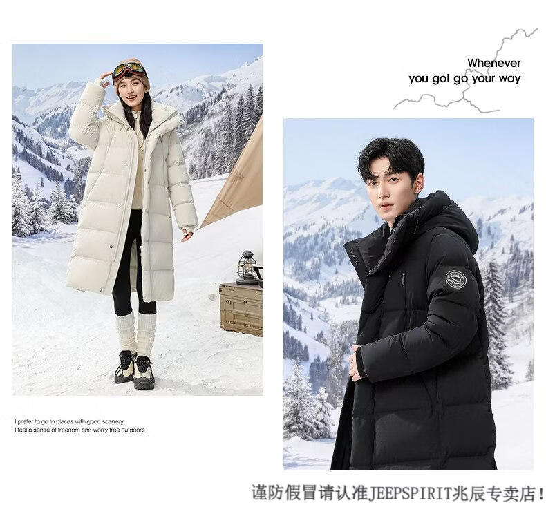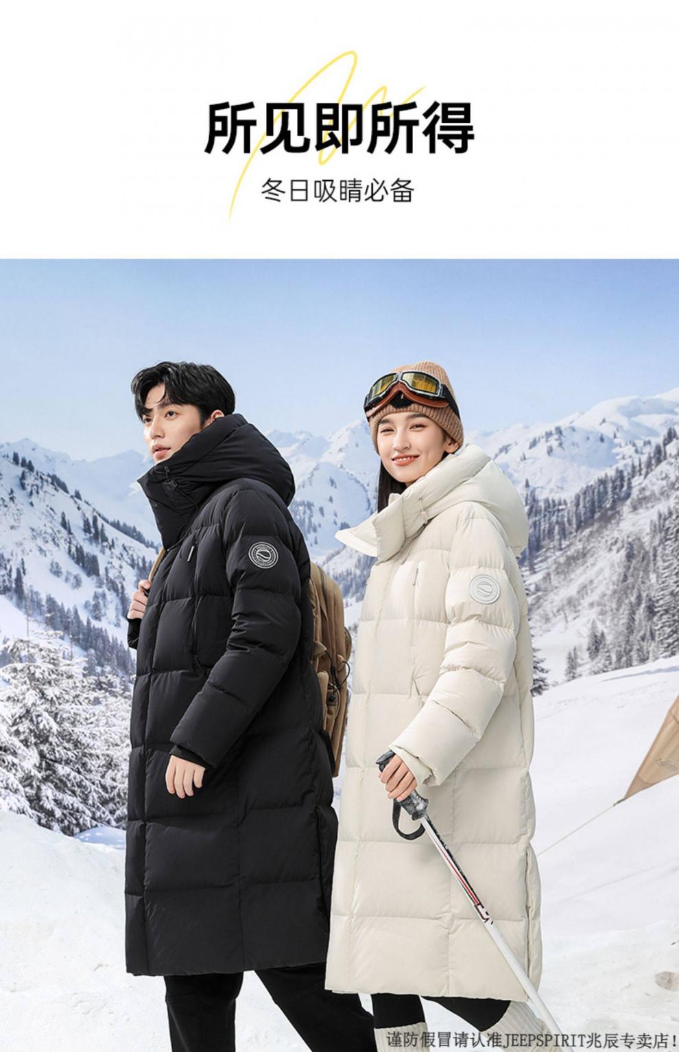 JEEP SPIRIT 300+ Пуховик с высоким наполнением Новая пара Пуховик для экстремальных холодов для мужчин и женщин Длинная куртка выше колена Northeast Минус 40 градусов Черный 82652 XS 100 Jin Jin весит менее 0,5 кг