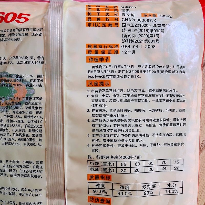 Asarum Denghai 605 corn seed corn seed encyclopedia red shaft big stick golden grain original drought-resistant and lodging Denghai 605 4000 grains original