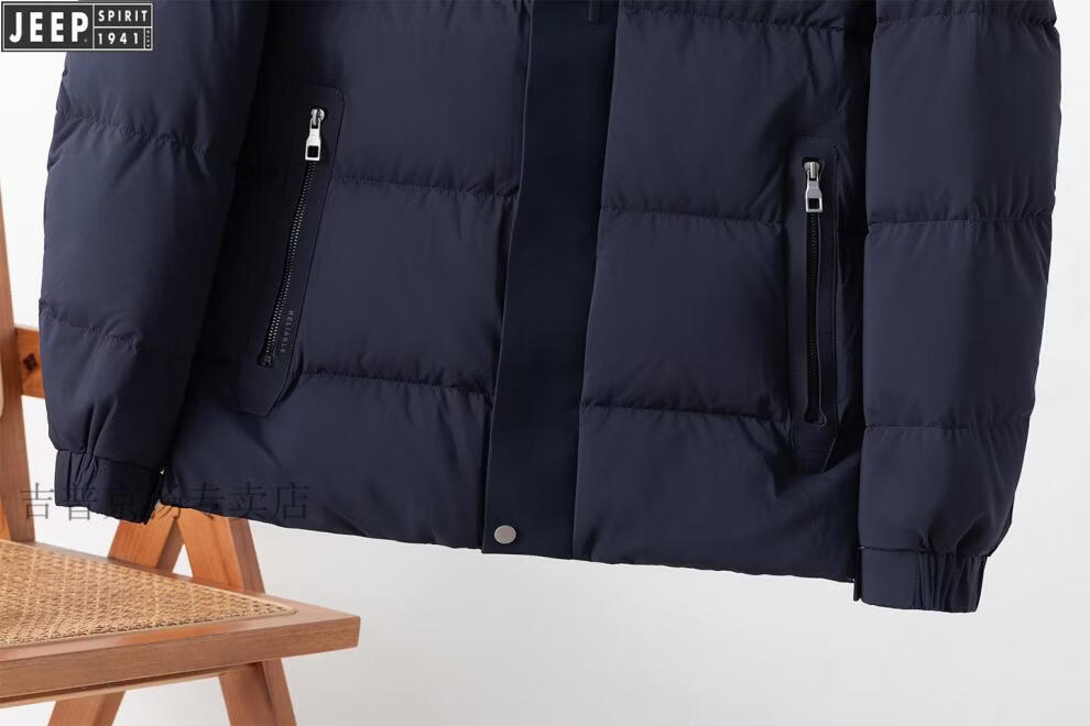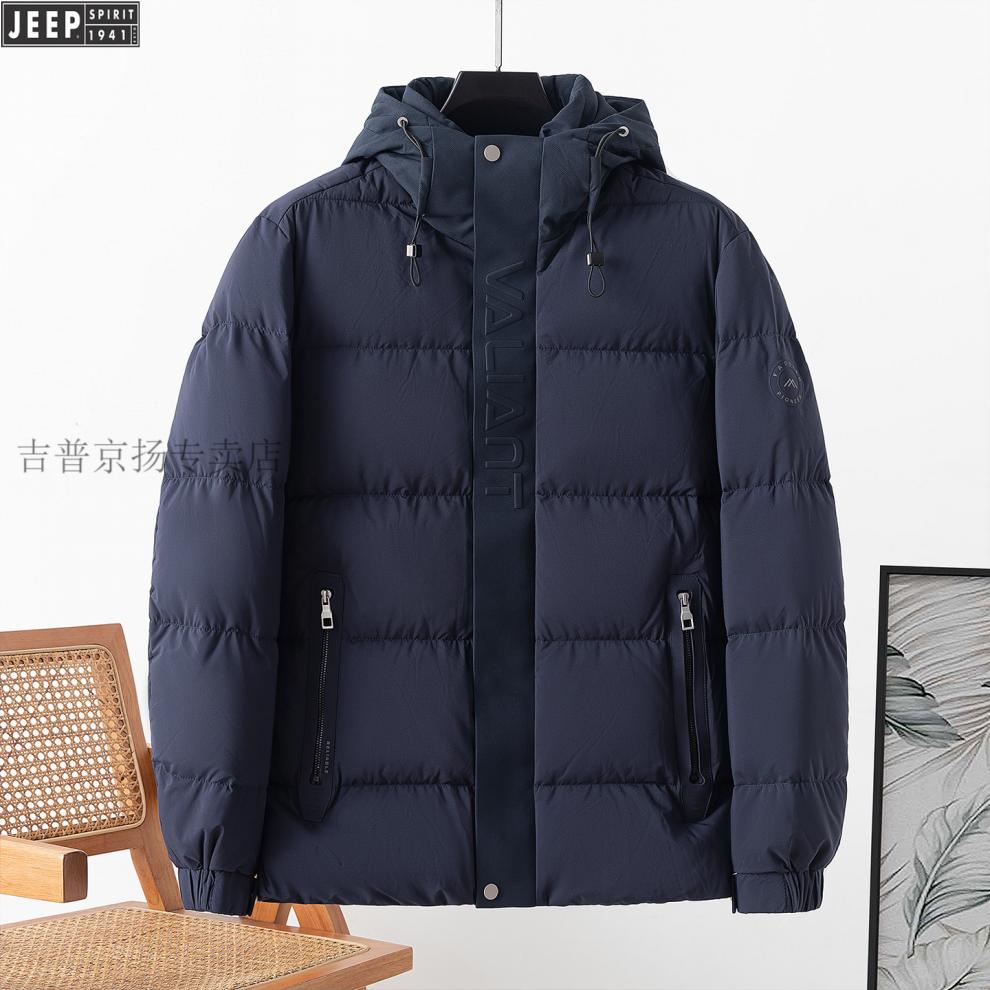 Мужской пуховик с капюшоном международного бренда JEEP, зима 2026, новый теплый и морозоустойчивый молодежный повседневный пуховик темно-синего цвета с воротником-стойкой M 170/88A