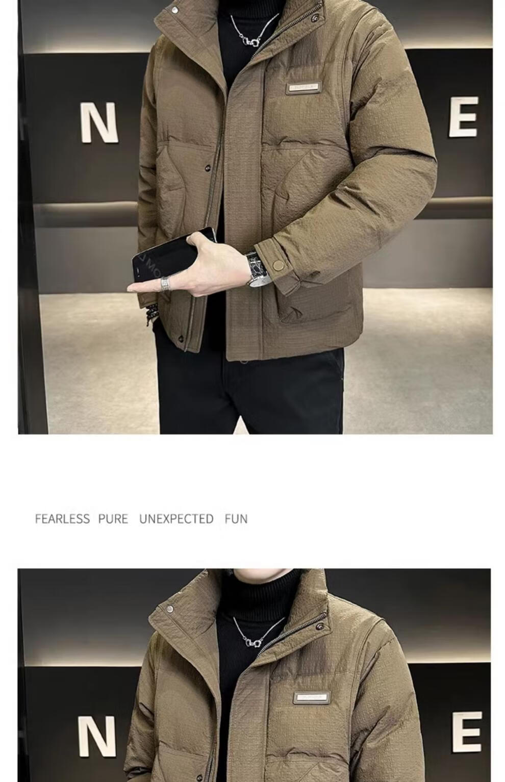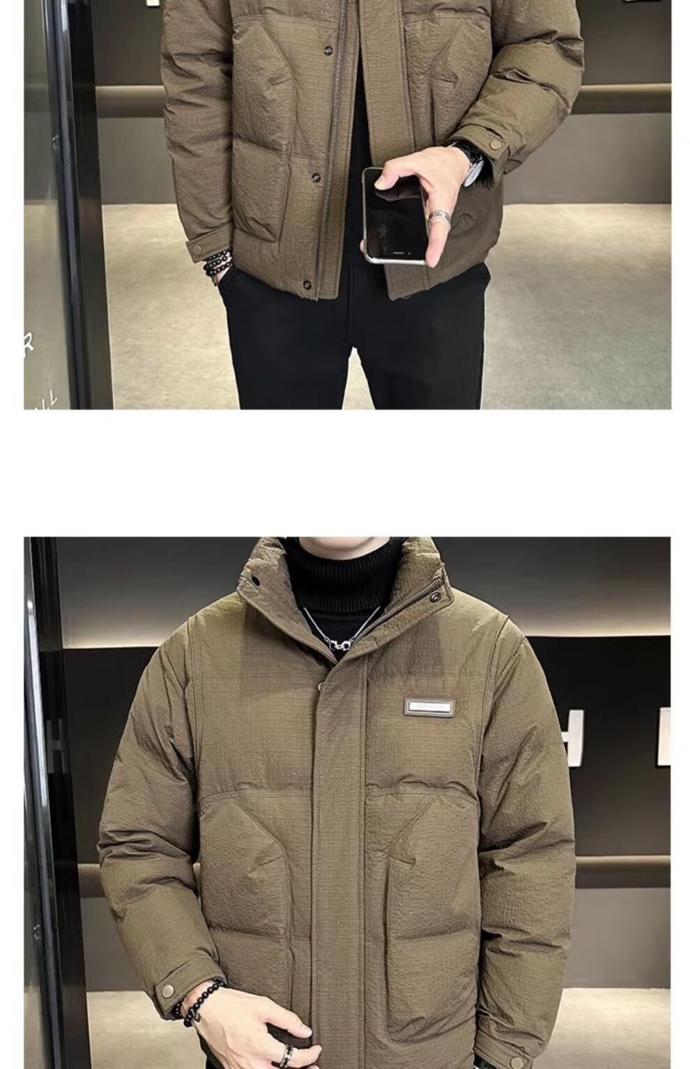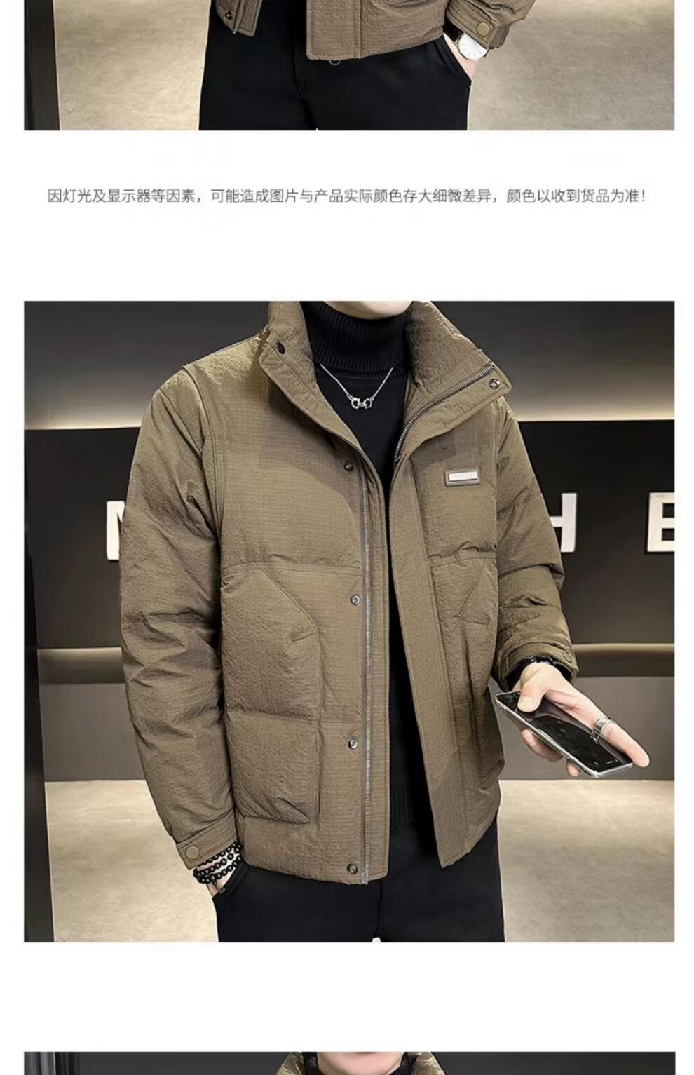 ROMON холодостойкий пуховик для мужчин зимой утолщенный 2025 новый стиль новая ткань легкая и короткая куртка с воротником-стойкой кофейного цвета M