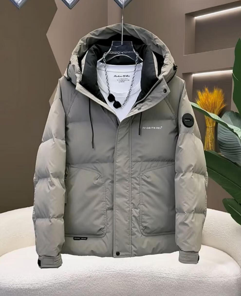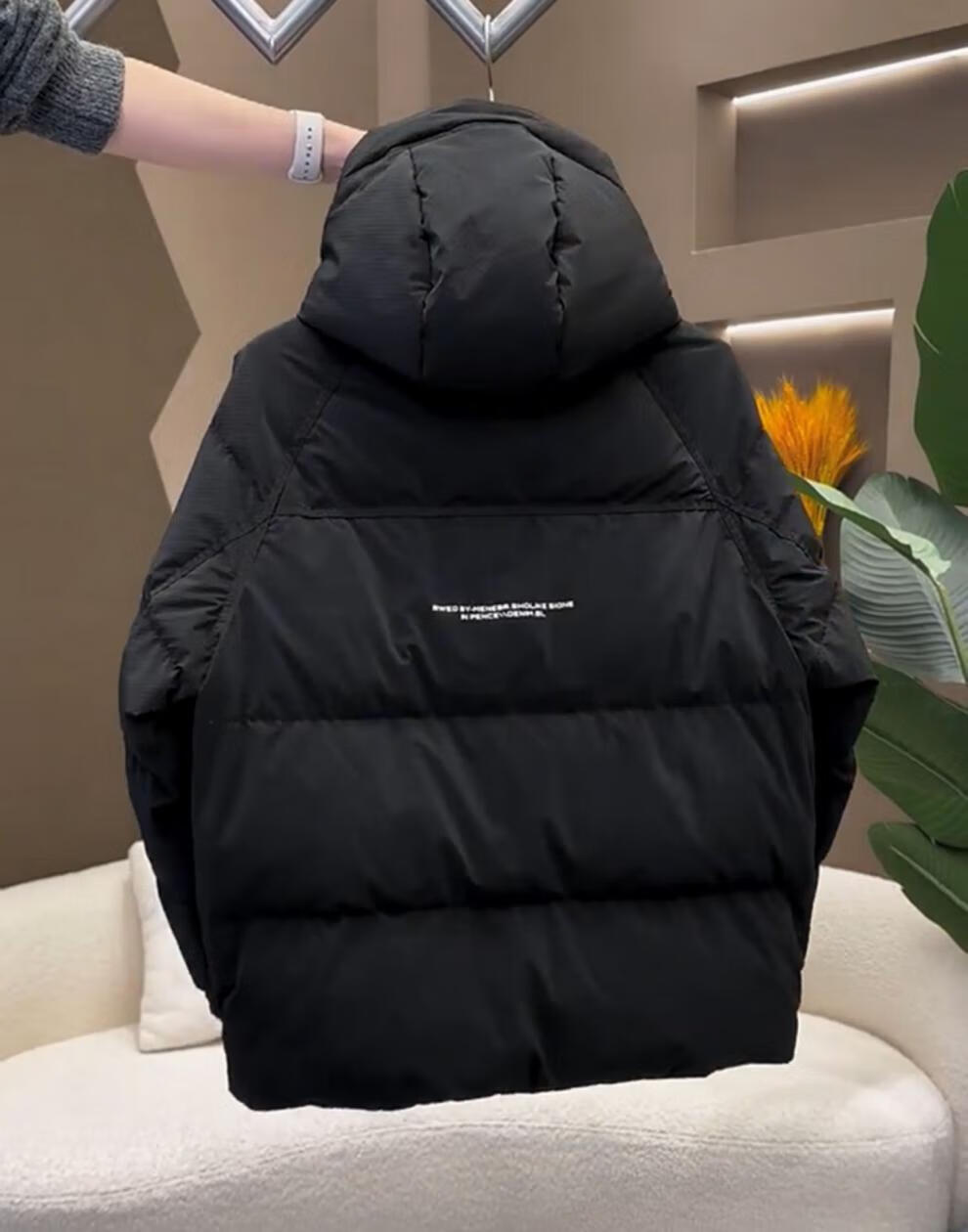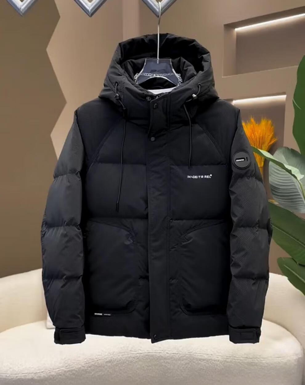 Мужской пуховик ROMON, зимний с капюшоном, новинка 2025 года, морозостойкий и теплый, утолщенный, красивый мужской повседневный пиджак в корейском стиле, черный, L рекомендуется 120-135 Jin Jin, вес 0,5 кг.