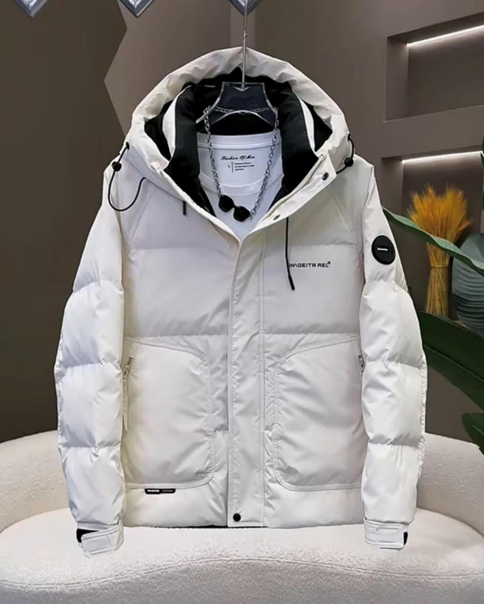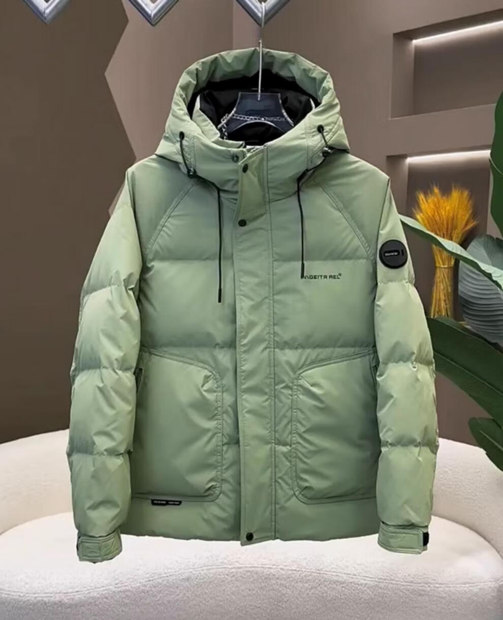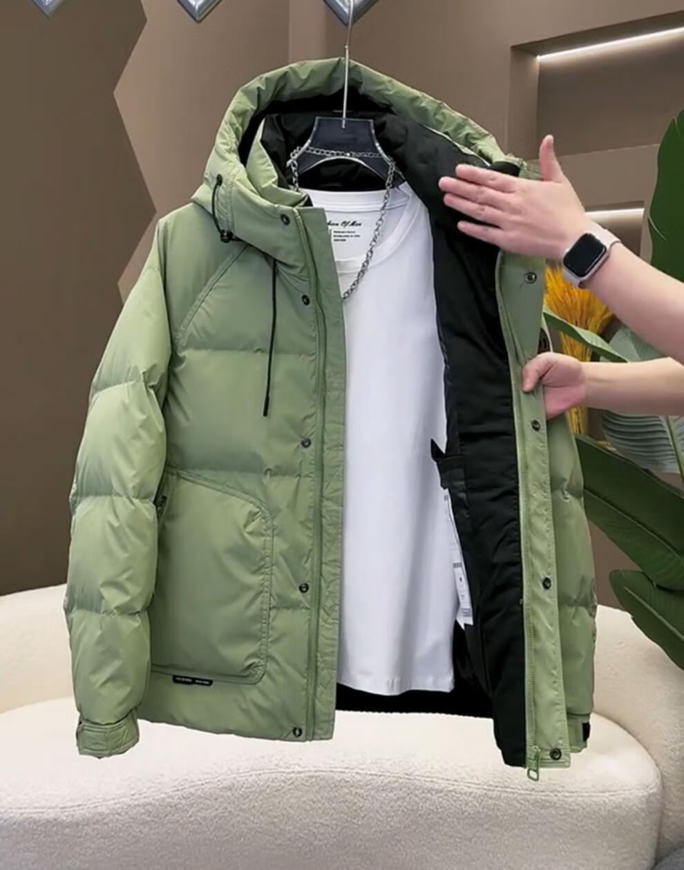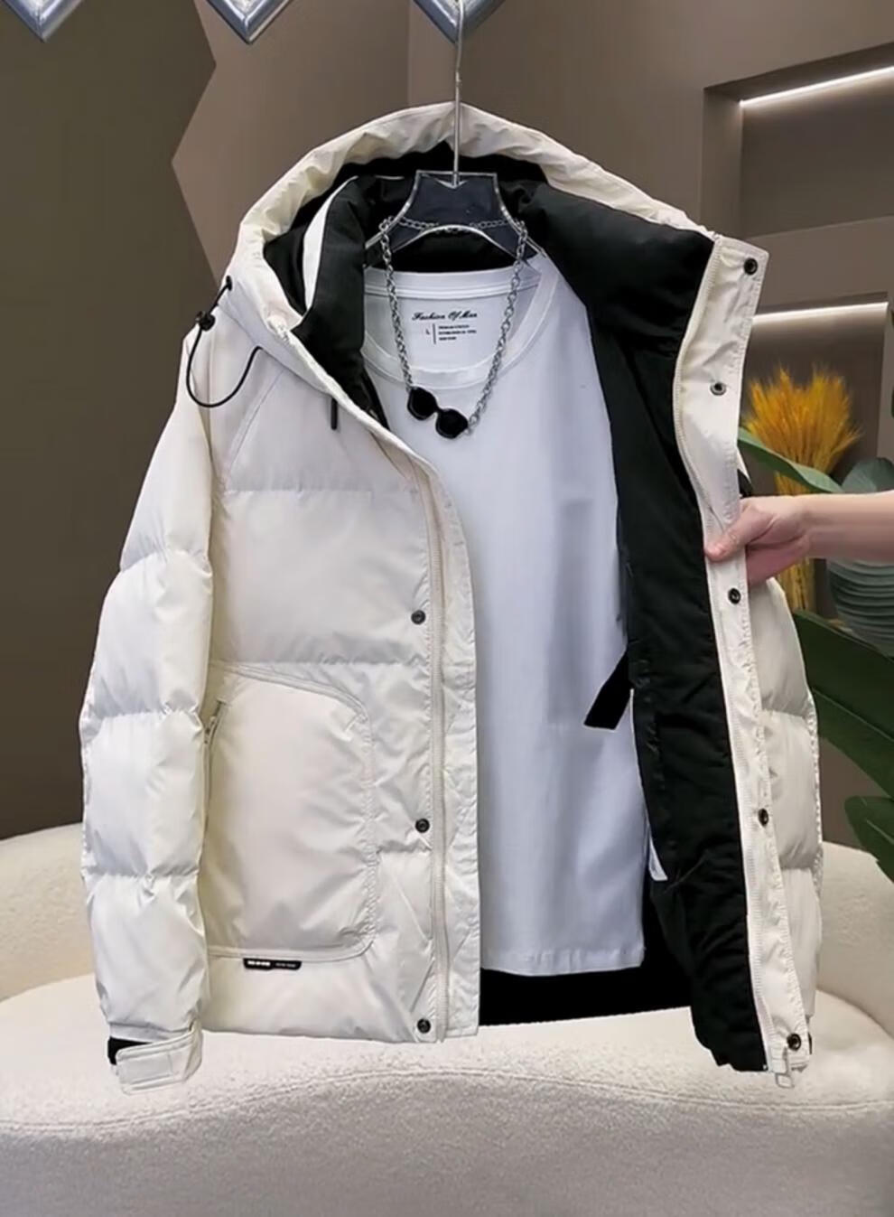 Мужской пуховик ROMON, зимний с капюшоном, новинка 2025 года, морозостойкий и теплый, утолщенный, красивый мужской повседневный пиджак в корейском стиле, черный, L рекомендуется 120-135 Jin Jin, вес 0,5 кг.
