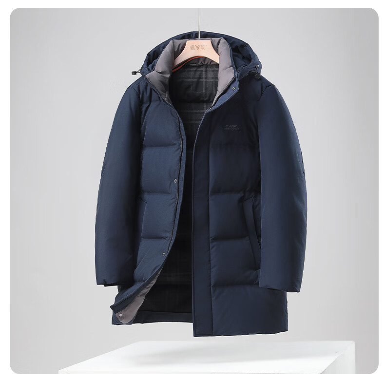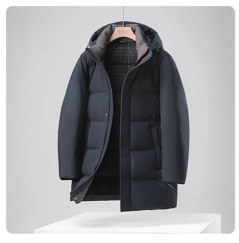 Yalu 2025, новый мужской пуховик с капюшоном средней длины, утолщенный, повседневный, теплый, повседневный, свободный, универсальное, осенне-зимний, черный, L рекомендуется 110-130 Jin Jin, вес 0,5 кг.