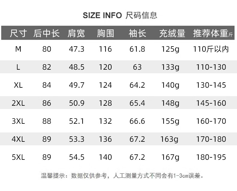 China (cm) 165 / 88-90 170 / 96-98 175 / 108-110 180 / 118-122 185 / 126-130