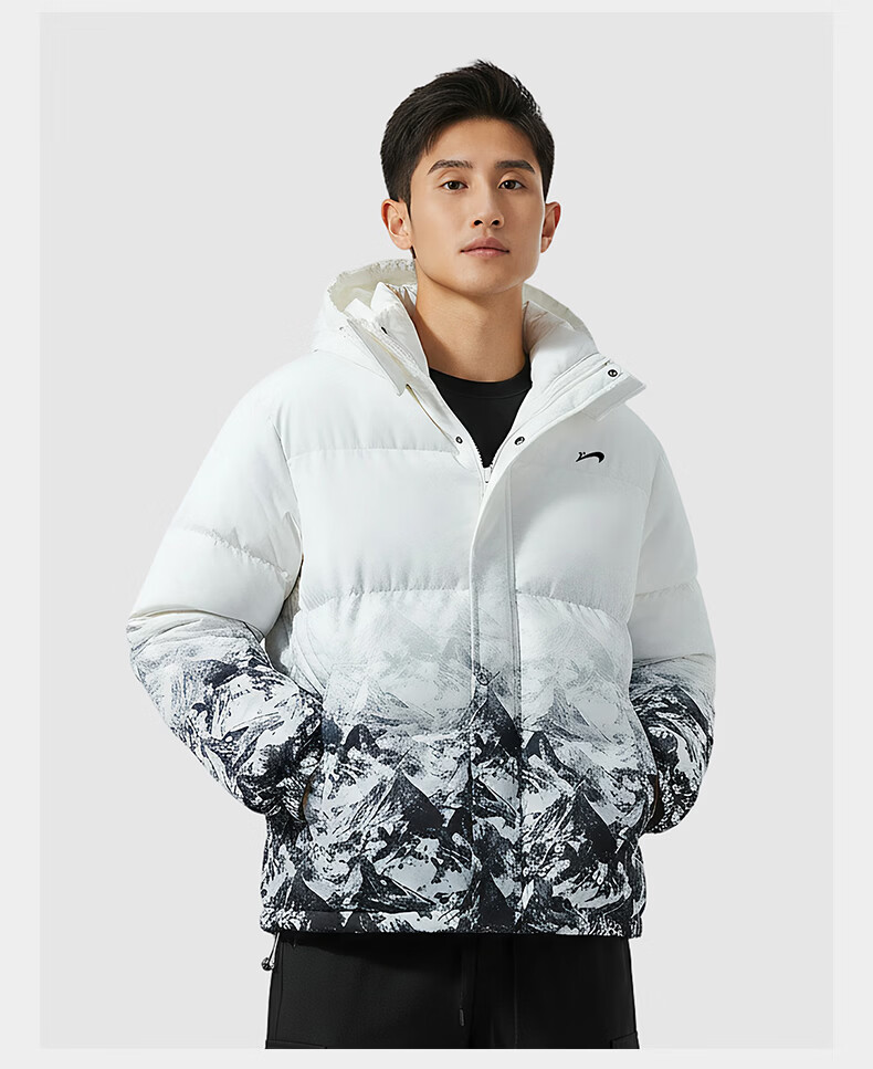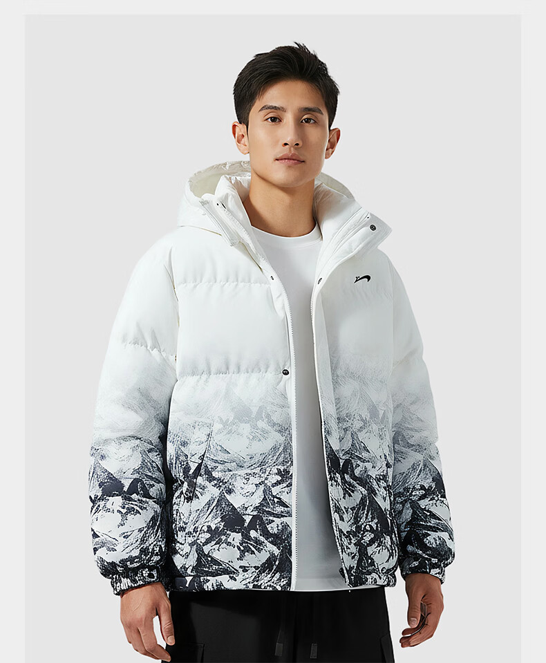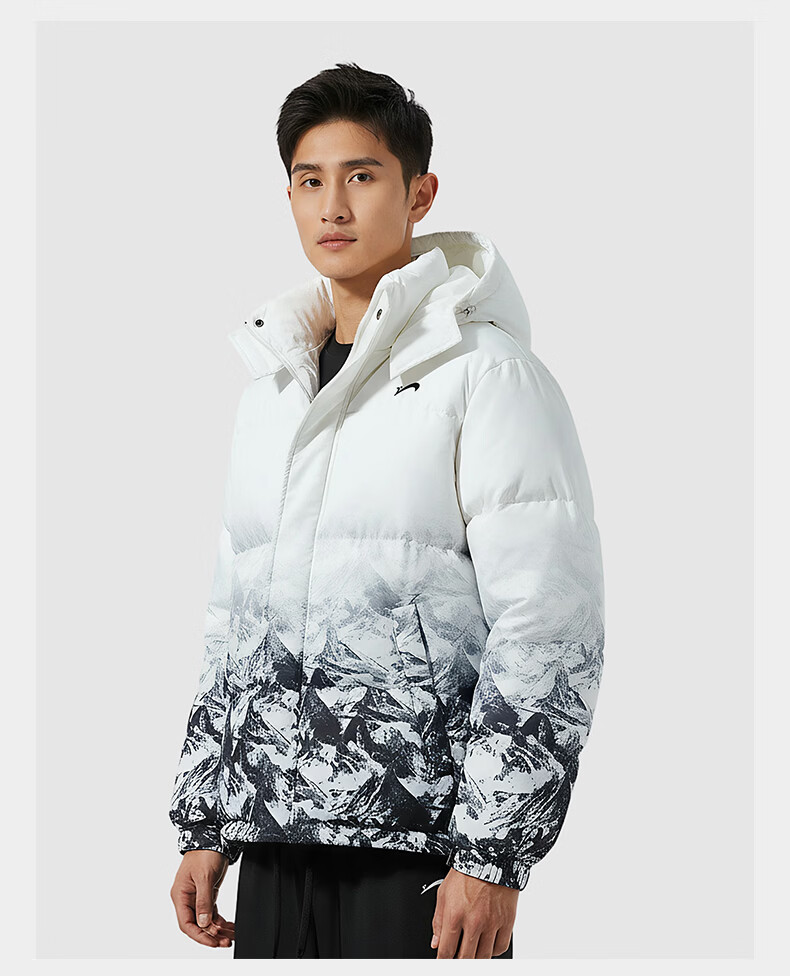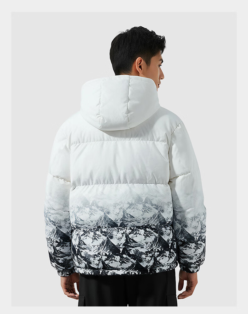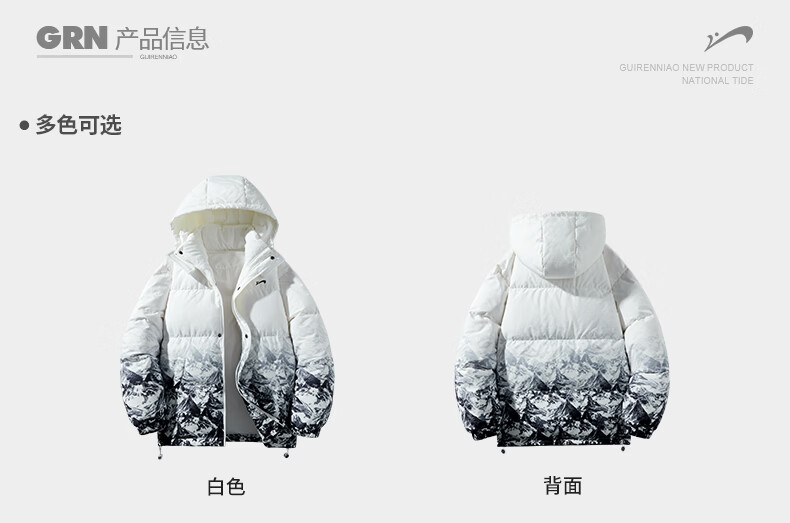 Guirenniao hooded down jacket men's new winter 90 duck down warm loose trendy snow mountain gradient thickened windproof jacket white M