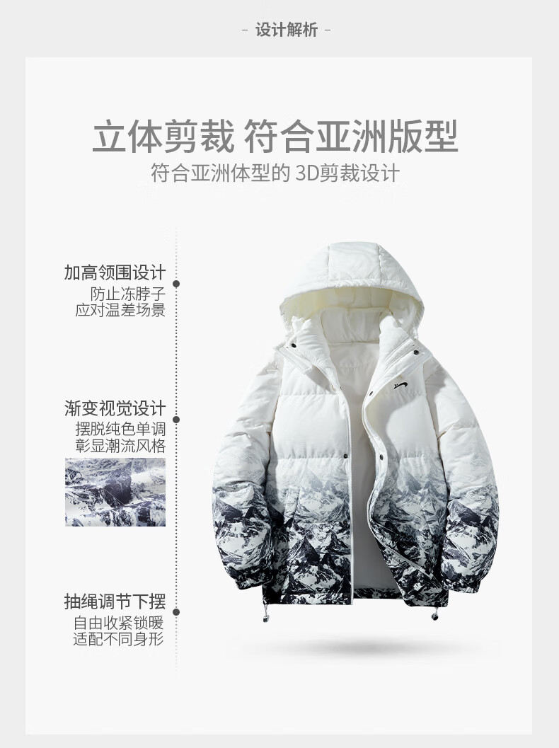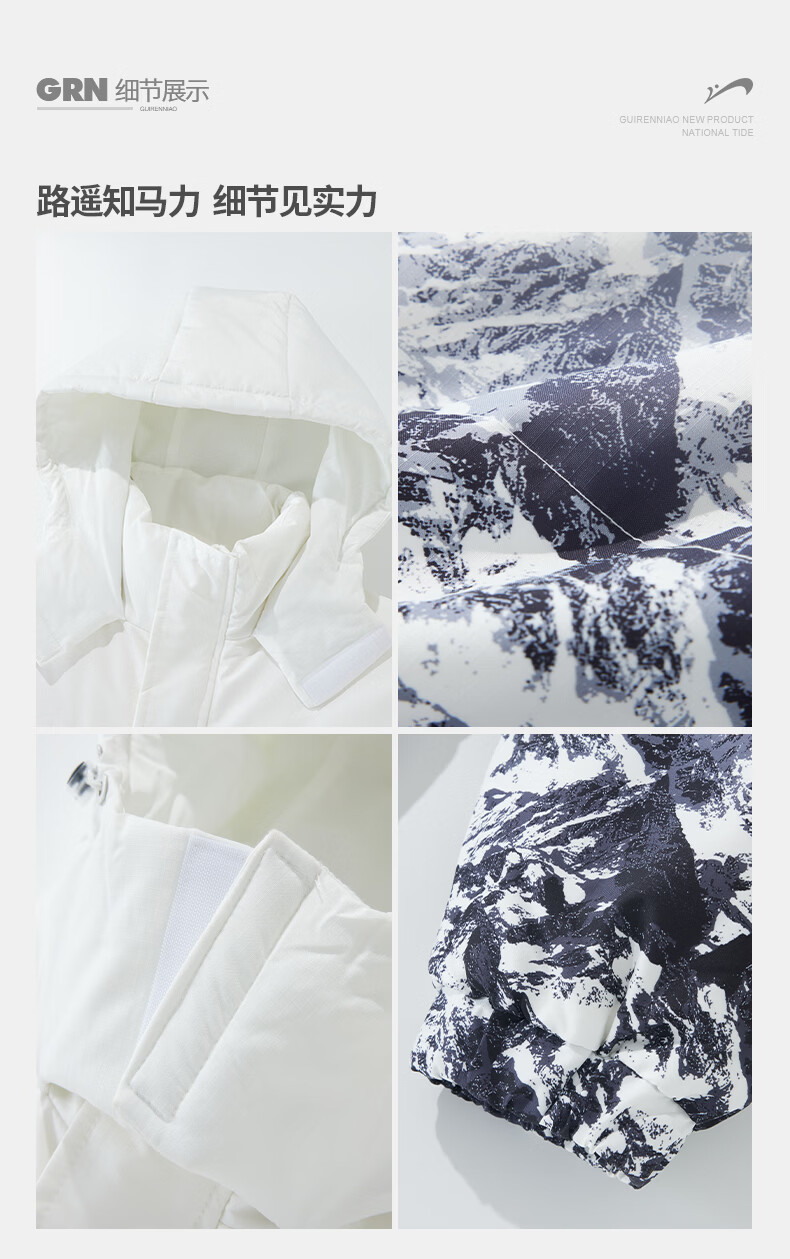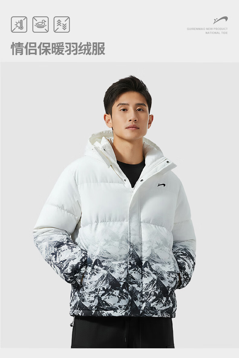 Guirenniao hooded down jacket men's new winter 90 duck down warm loose trendy snow mountain gradient thickened windproof jacket white M