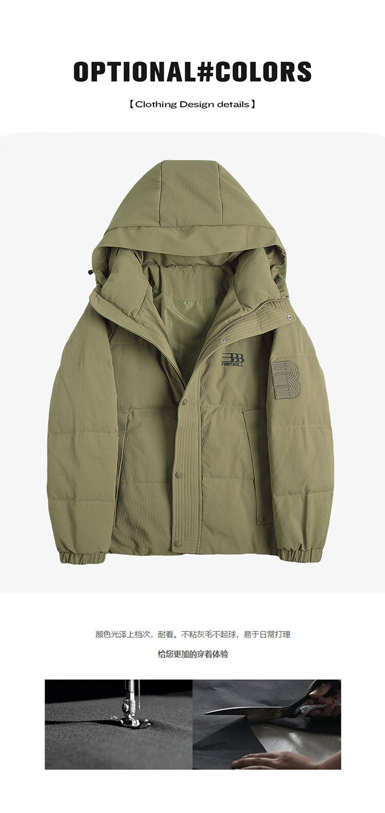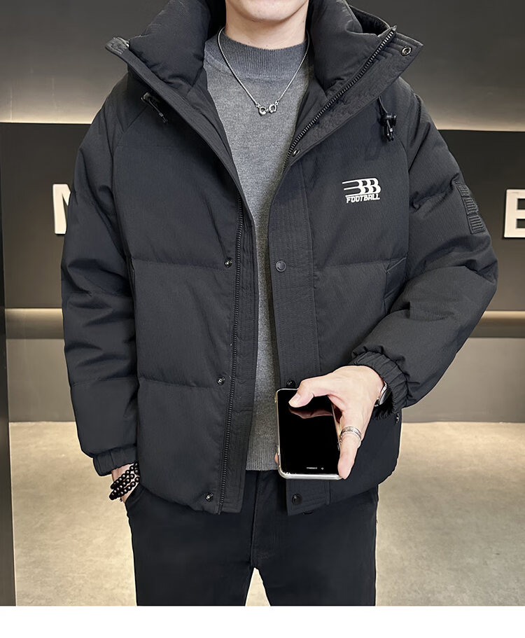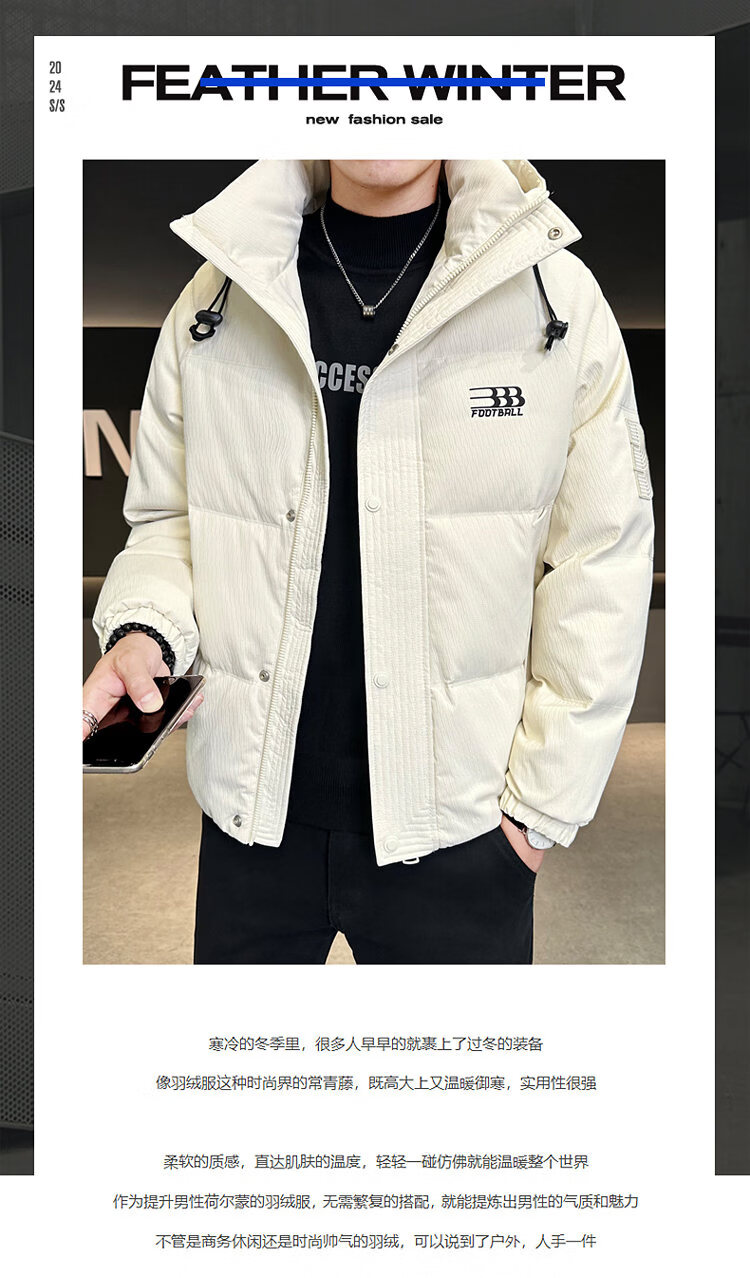 ROMON белый утиный пуховик мужской короткий зимний 2025 новый высококачественный с капюшоном красивое утолщенное зимнее пальто модный бренд черный M