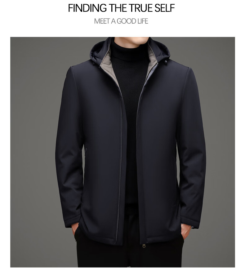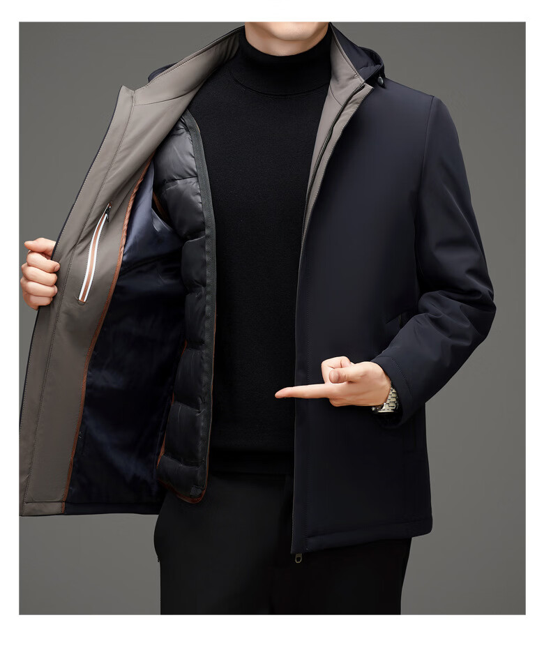 MAGIOPY легкая роскошная брендовая мужская пуховая куртка среднего возраста 2026 зимняя новая деловая повседневная куртка с капюшоном мужская темно-синяя M 170