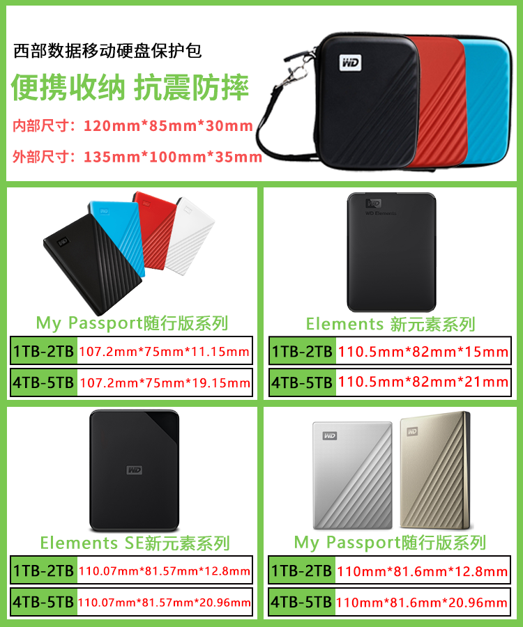 Western Digital (WD) 2.5-inch mobile hard drive universal shockproof protective case hard shell shockproof case protective case hard drive case WD2.5-inch hard shell case red