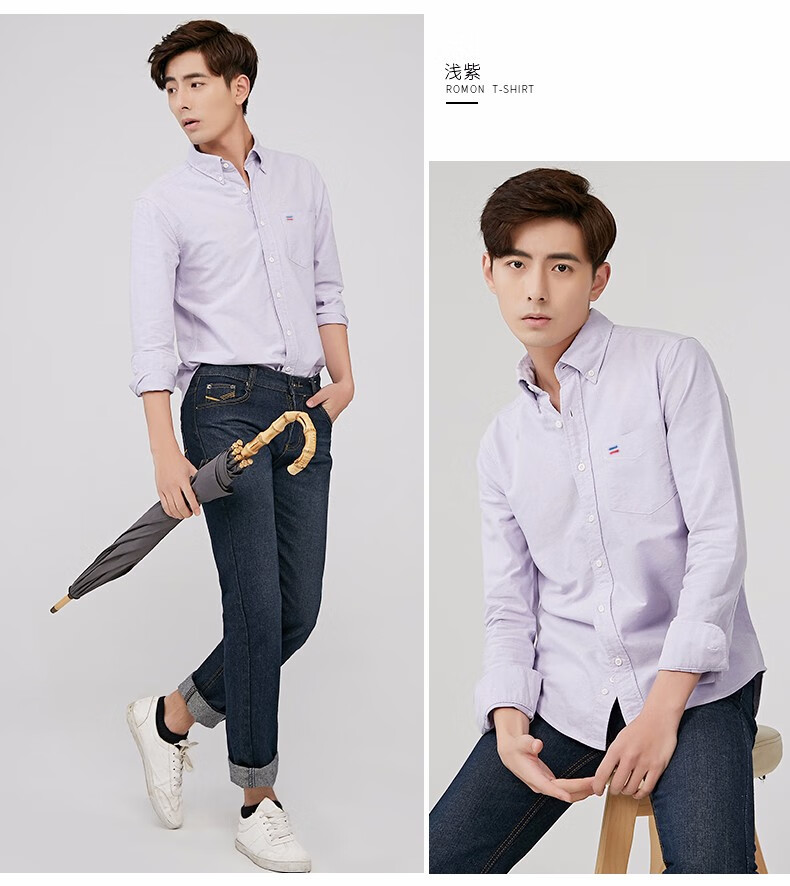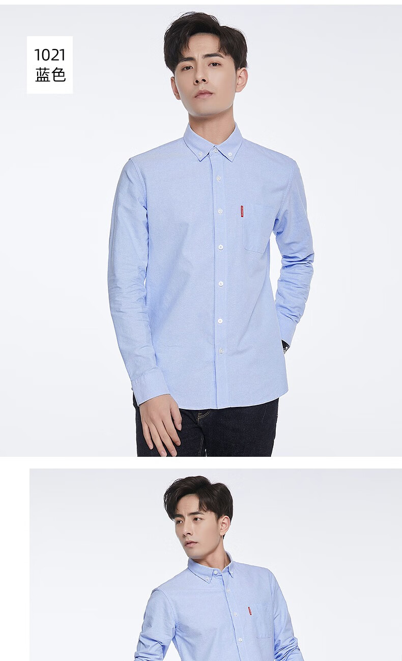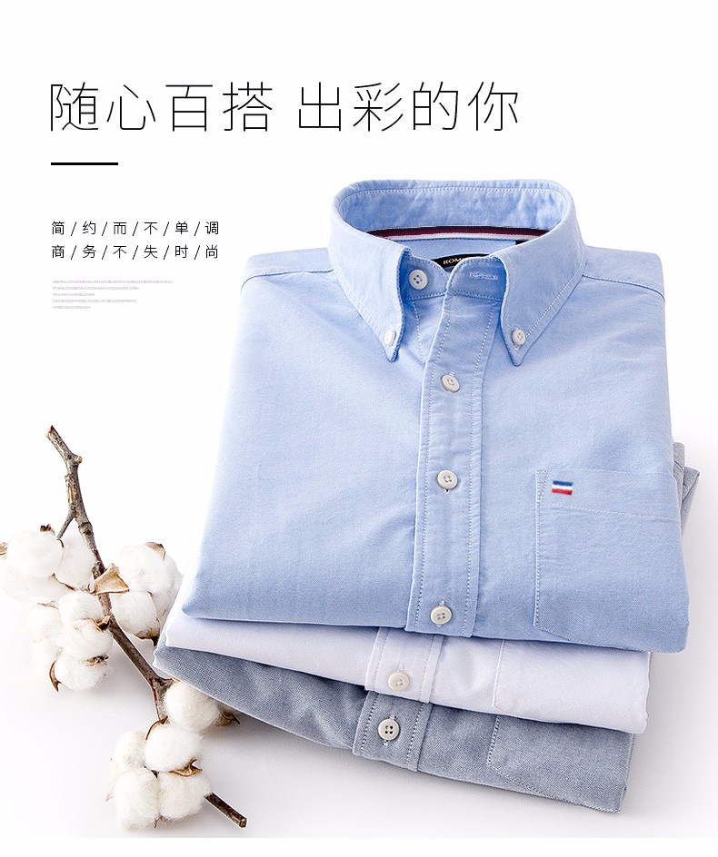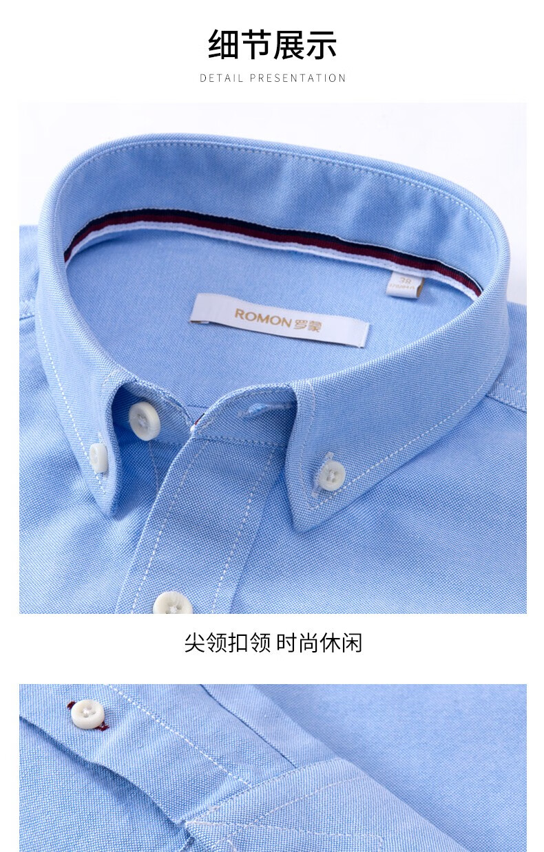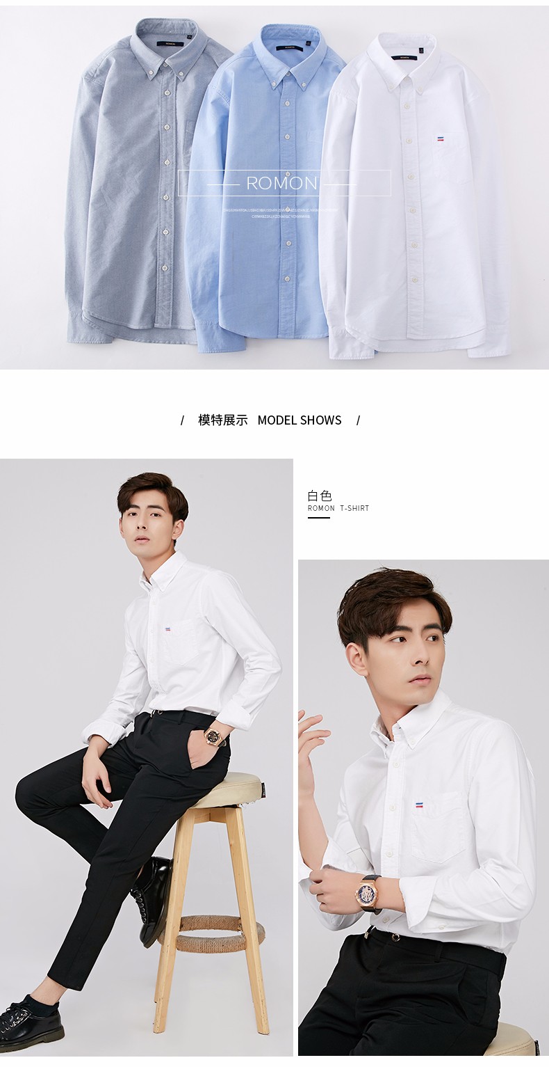 ROMON pure cotton Oxford long-sleeved shirt men's casual solid color top spring and autumn style young and middle-aged business slim shirt men blue 41