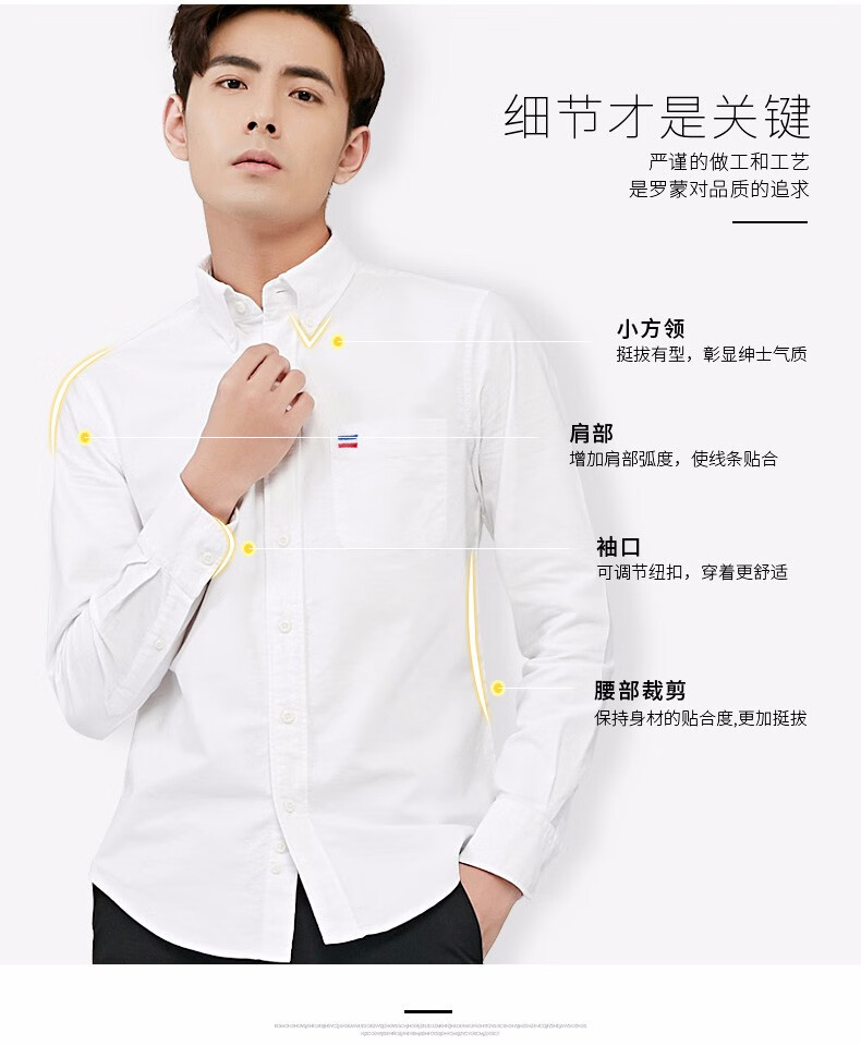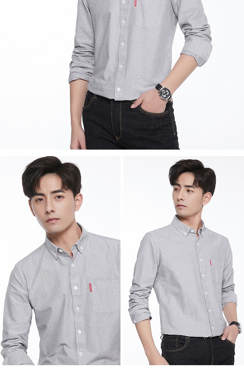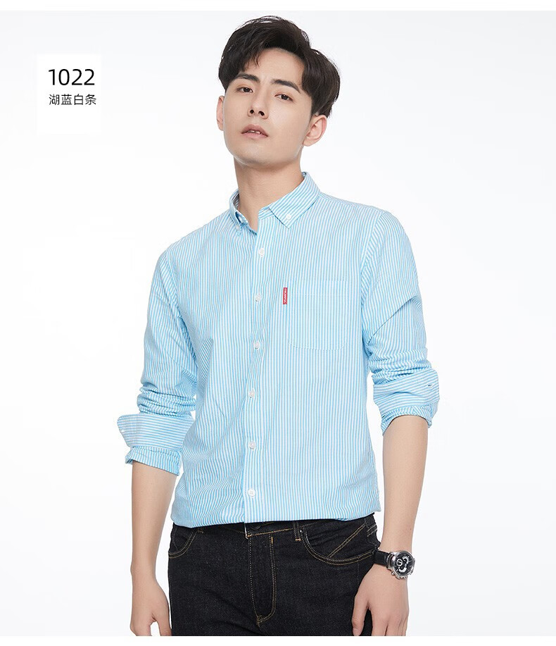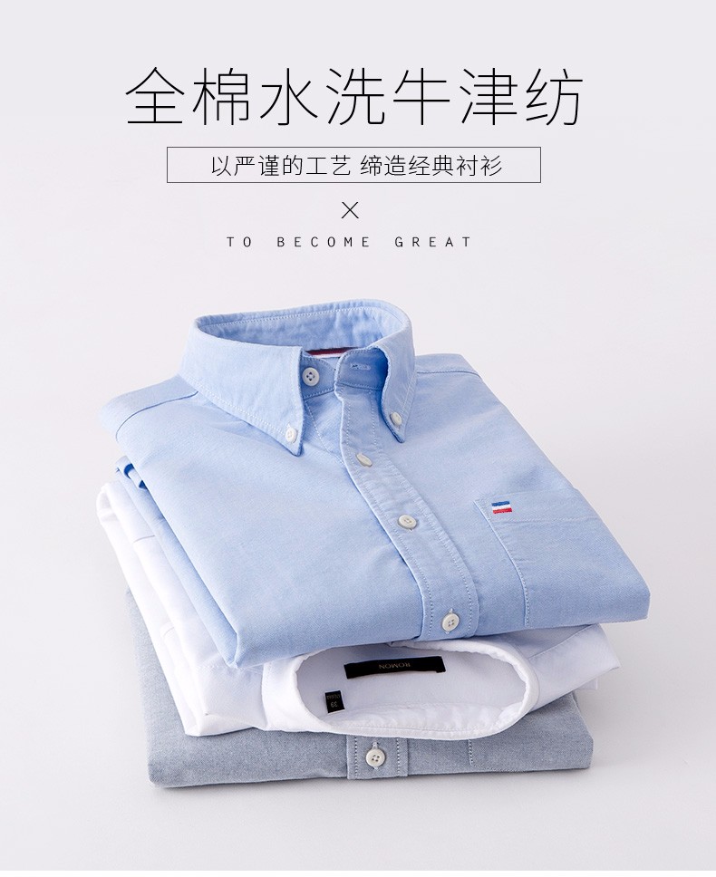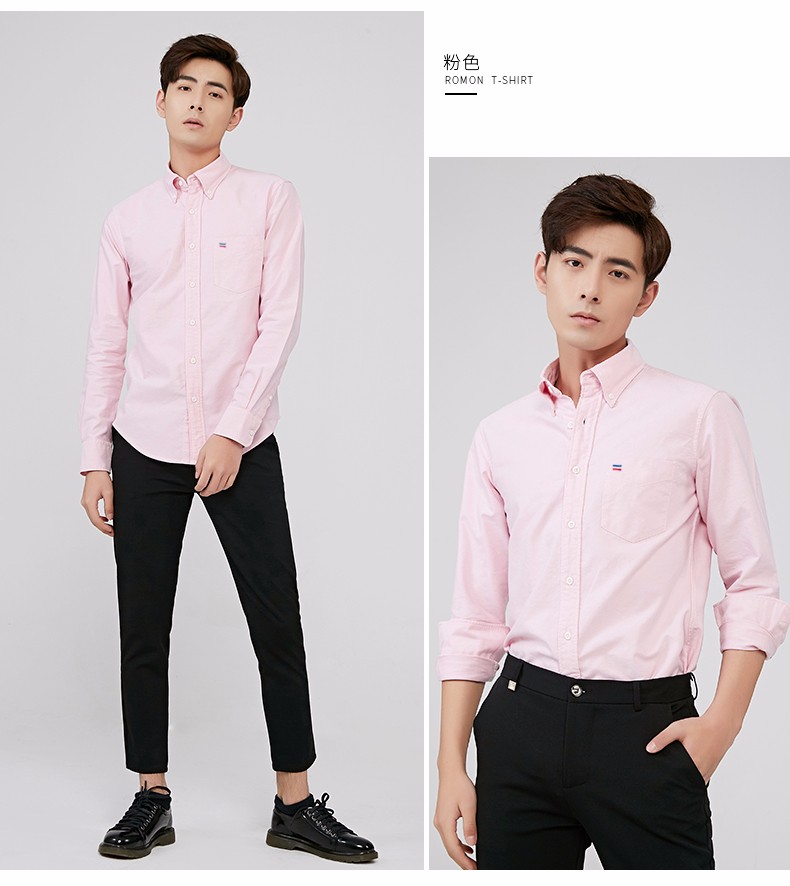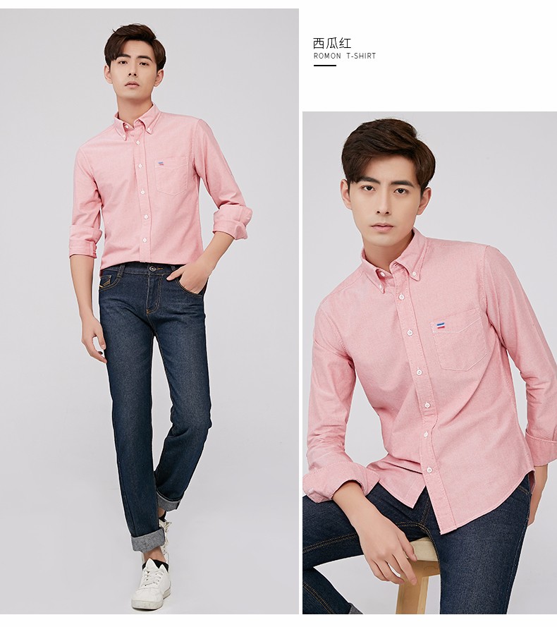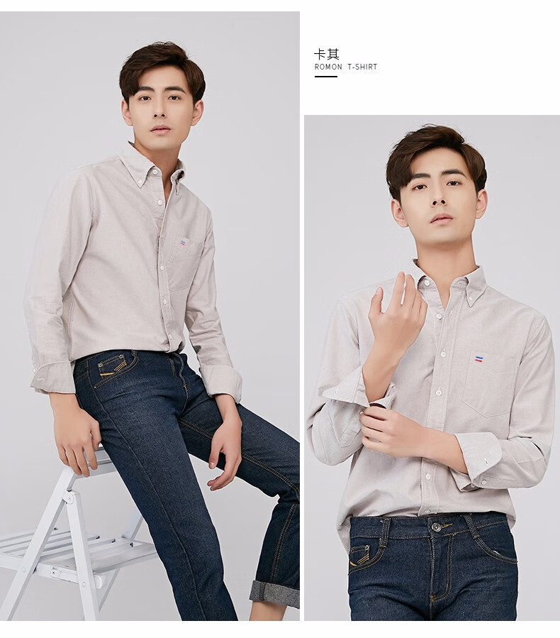 ROMON pure cotton Oxford long-sleeved shirt men's casual solid color top spring and autumn style young and middle-aged business slim shirt men blue 41