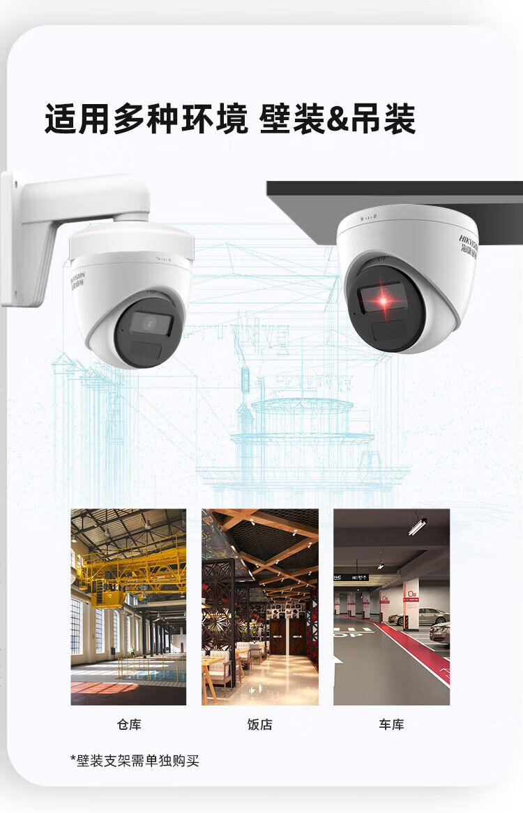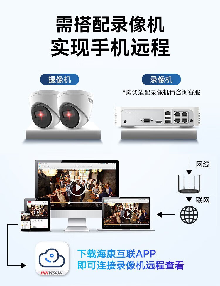 HIKVISION海康威视监控摄像头300万家用红外夜视AI人形检测可录音手机远程室内外监控器T13HV3-IA 2.8MM