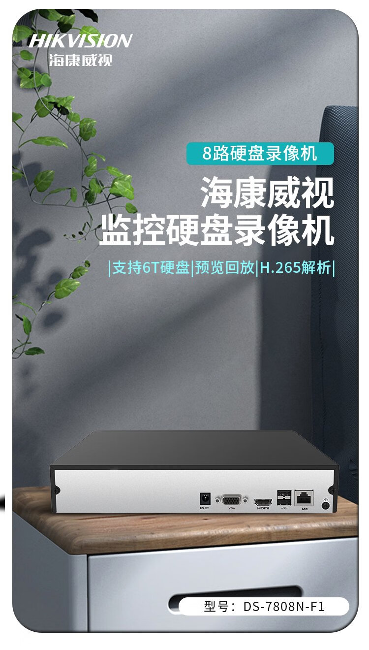 HIKVISION Hikvision hard disk video recorder monitoring host NVR 8-channel high-definition network single disk supports 6T hard disk mobile phone remote DS-7808N-F1