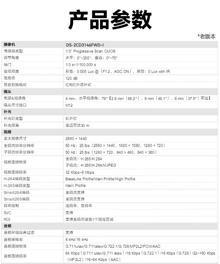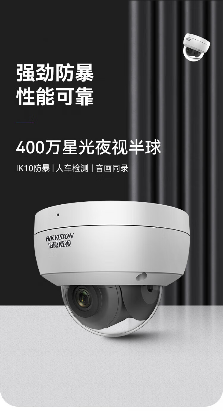 HIKVISION Hikvision Überwachungskamera 4 Millionen hochauflösende Sternenlicht-Nachtsicht-High-Definition-Pickup-PoE-Netzwerk-Anti-Riot-Kamera für den Innen- und Außenbereich DS-2CD3146FWD-I2,8 mm