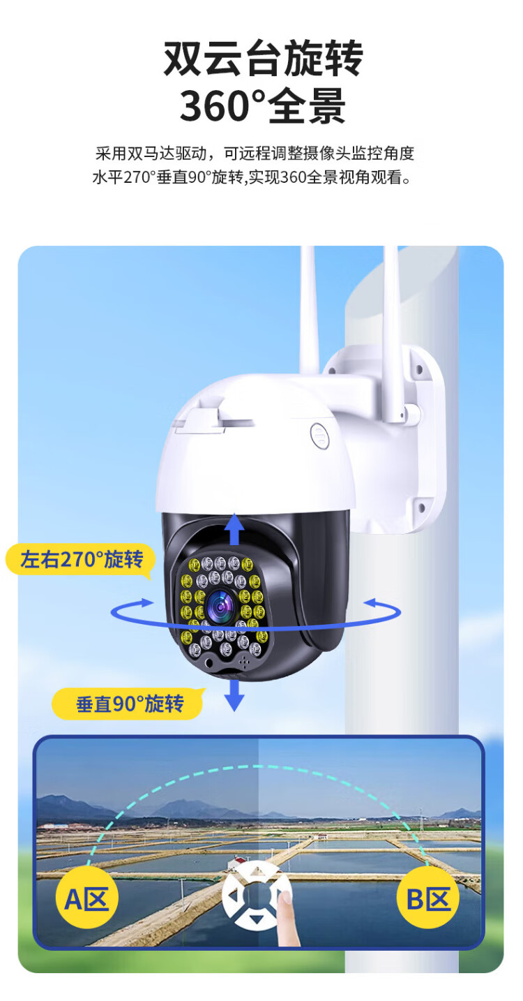 Great Wall wireless AI camera mobile phone remote monitor home 360-degree no blind angle with night vision panoramic rural home outdoor high-definition outdoor waterproof talkable ball machine
