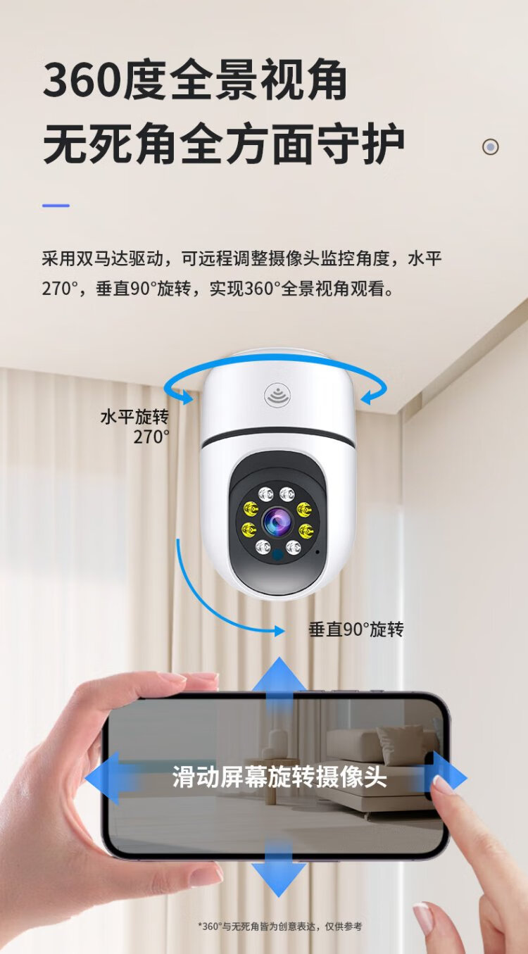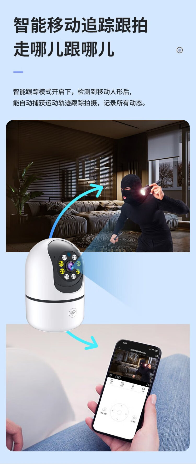 Great Wall Wireless Home 5G Dual-band AI Smart Camera Mobile Phone Remote Monitor 360 Degrees No Blind Angle with Night Vision Panoramic Voice Rotation Conversable Indoor and Outdoor Home PTZ