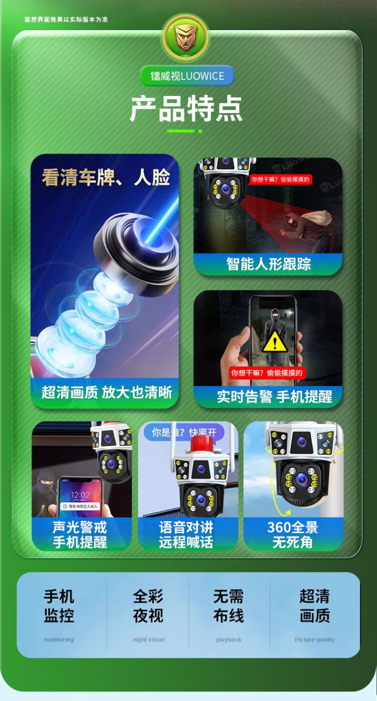 镭威视4g摄像头室户外终身免流量监控器家用无需连wifi手机远程360度无死角带高清夜视全景不用网线农村