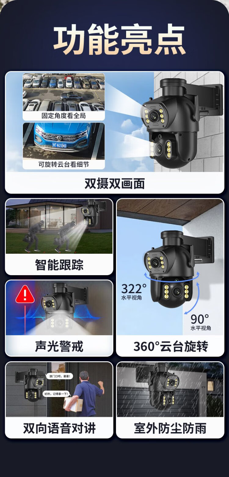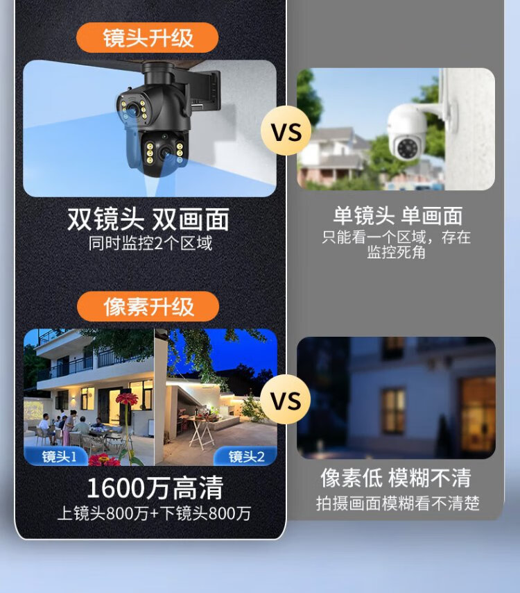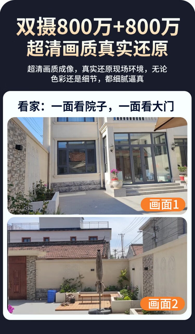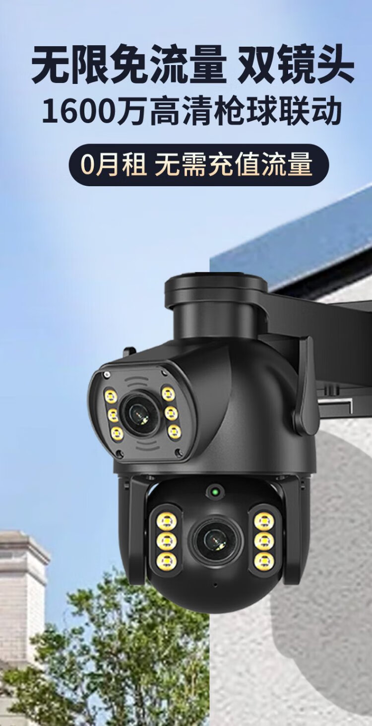 网络眼终身免流量双镜头摄像头室外看护监控家用无需连wifi手机远程监控360无死角高清防水