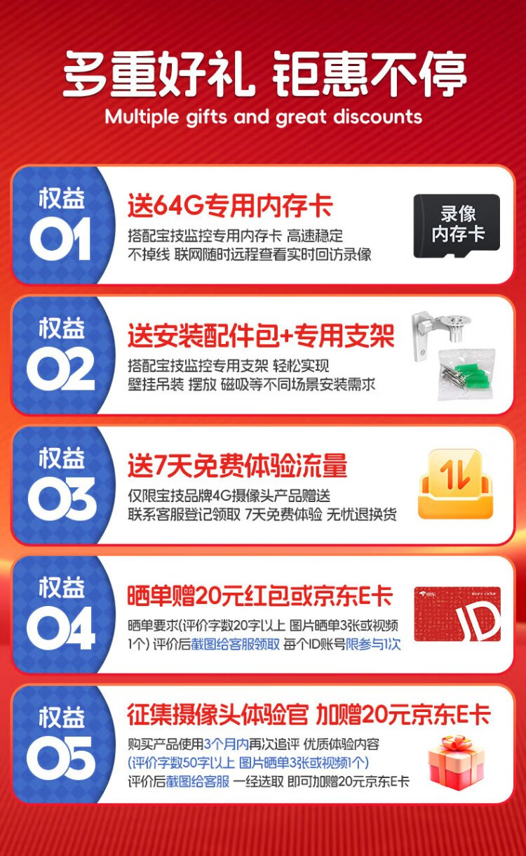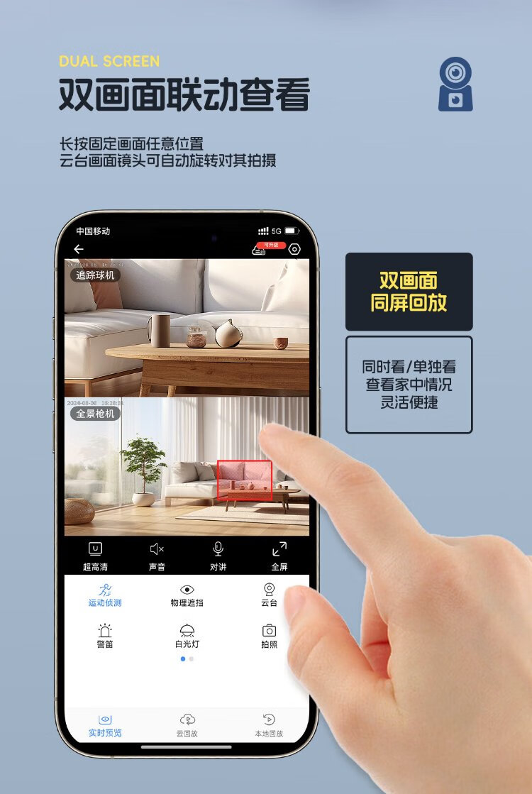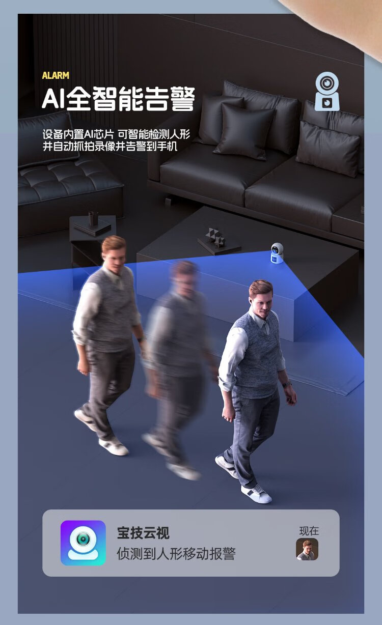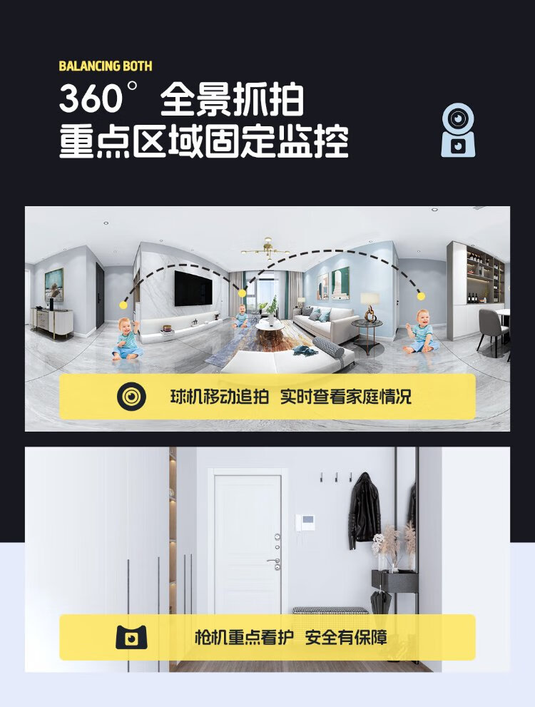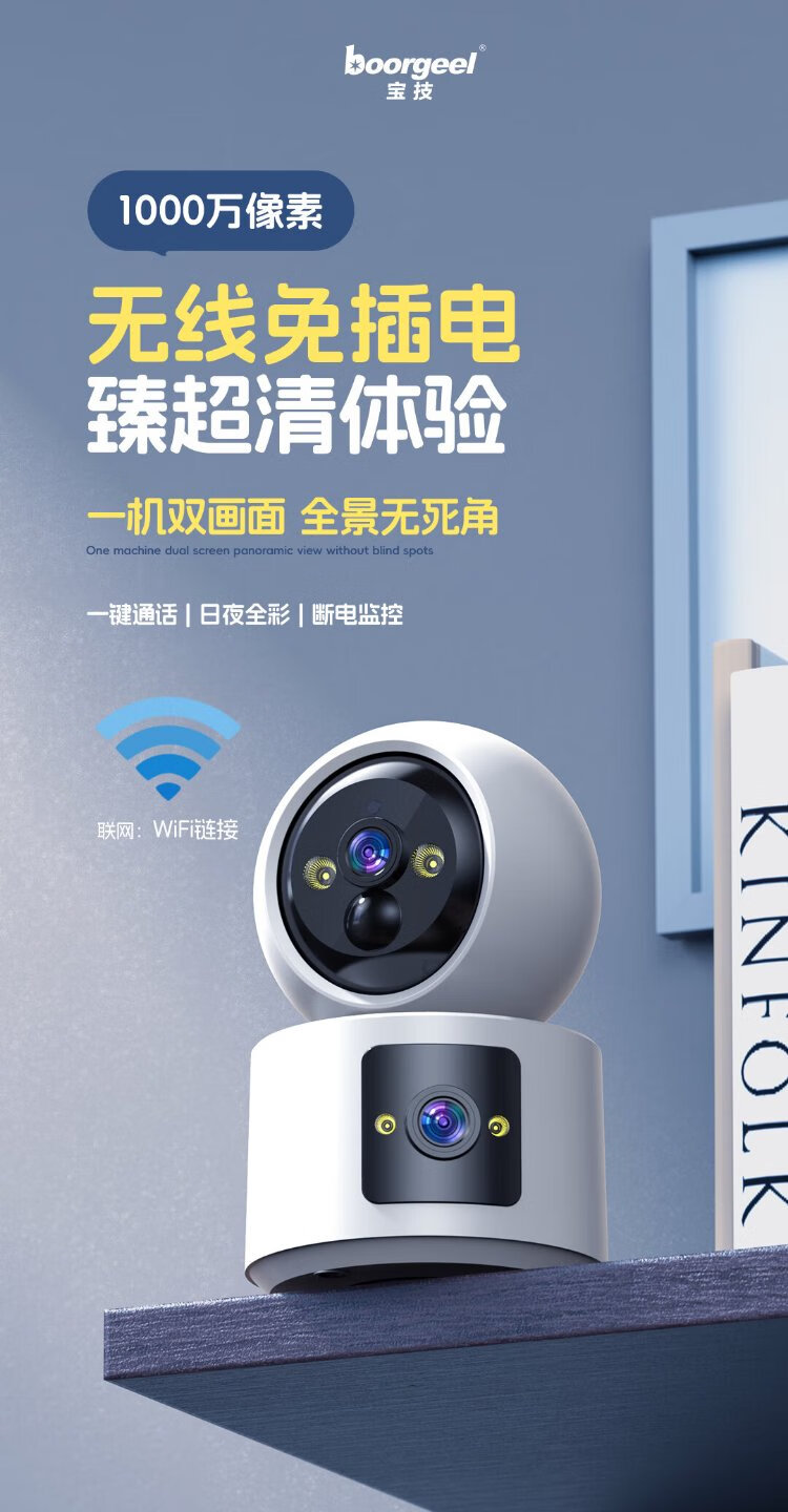 宝技家用无线电池双摄像头免插电免电源监控器360度无死角带夜视超清1000万全景WiFi手机远程室内外