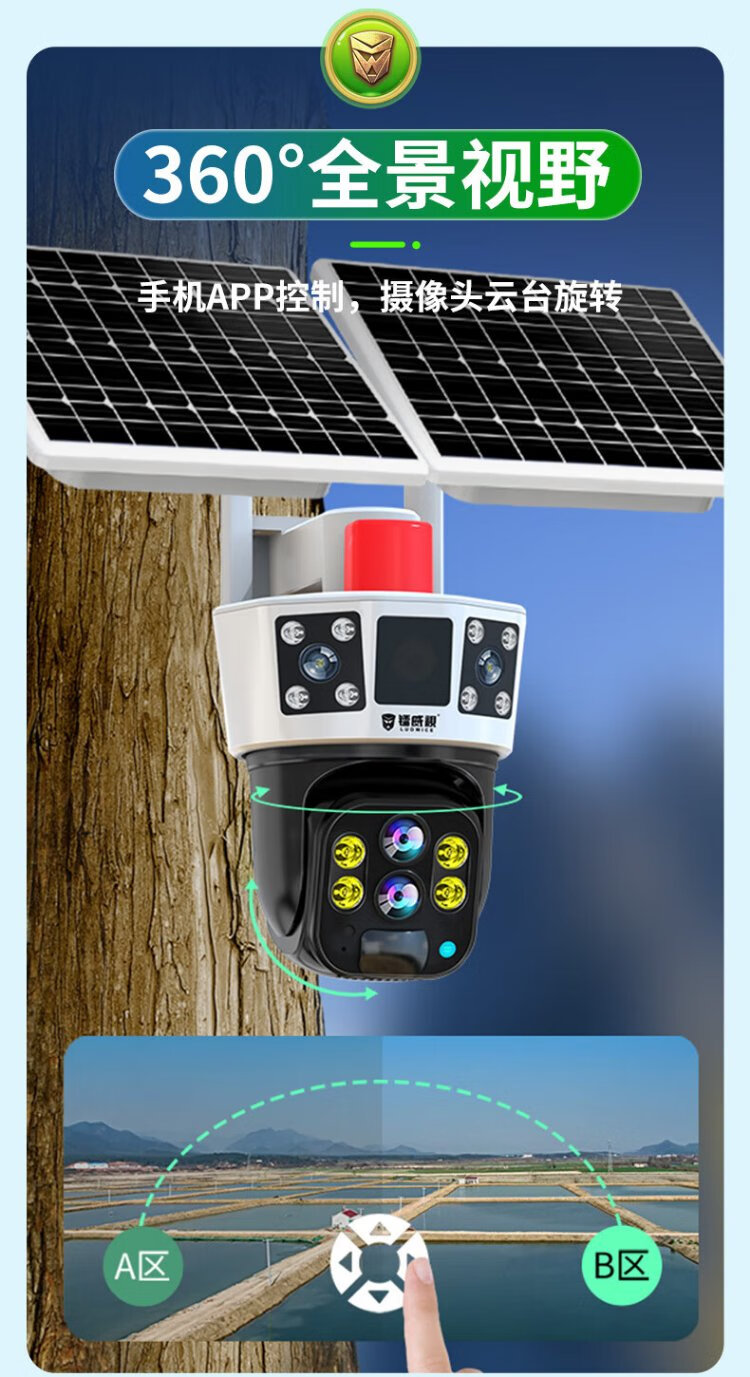 镭威视4g太阳能户外摄像头终身免流量室外免插电无需连wifi手机远程监控器家用360度无死角全景高清夜视