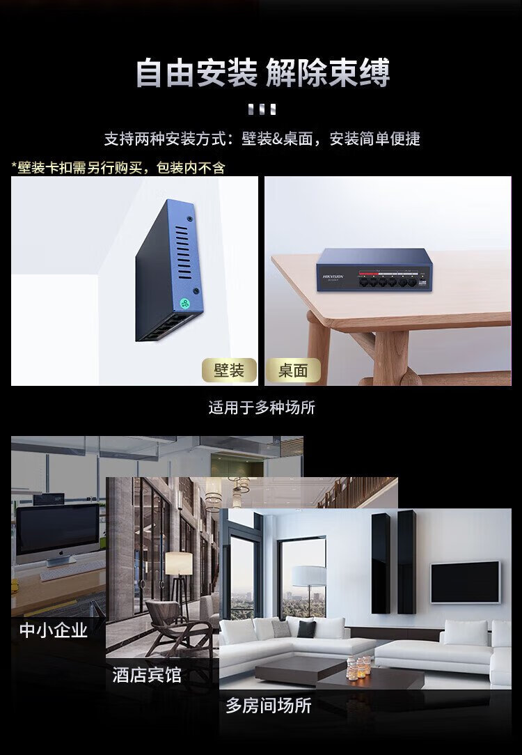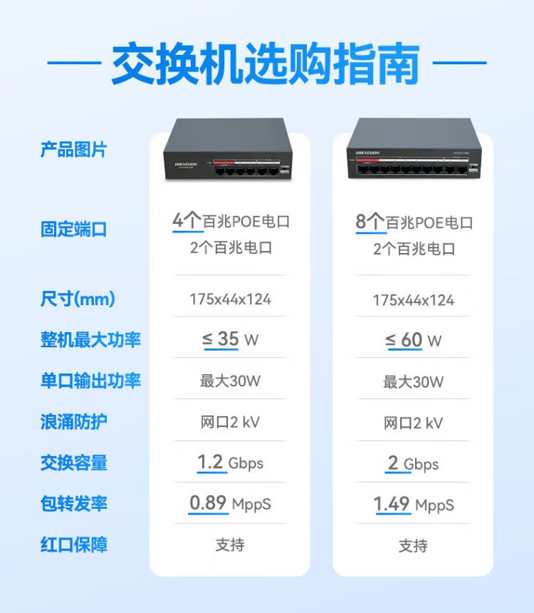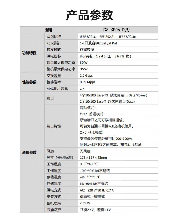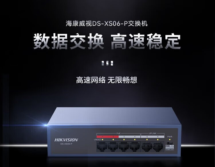 HIKVISION 4-port 100M POE power supply switch Long-distance network cable transmission hub Metal shell heat dissipation Red port protection Easy installation DS-XS06-P