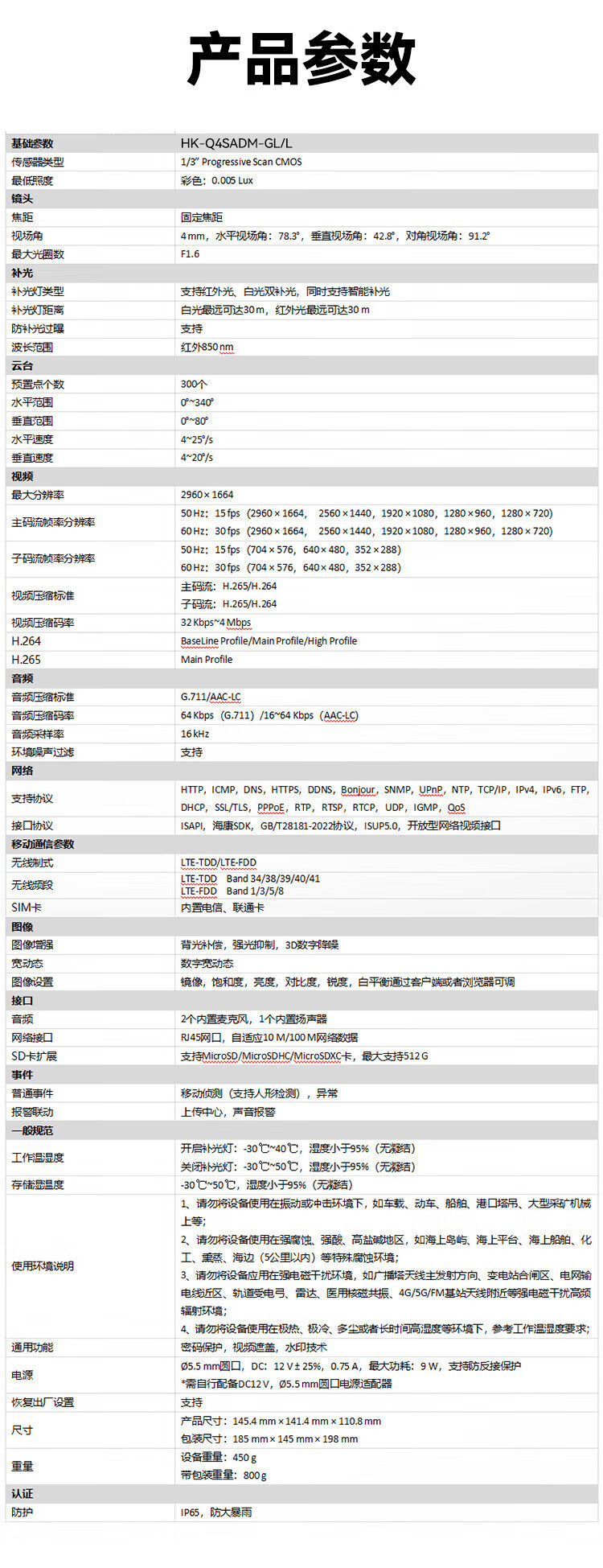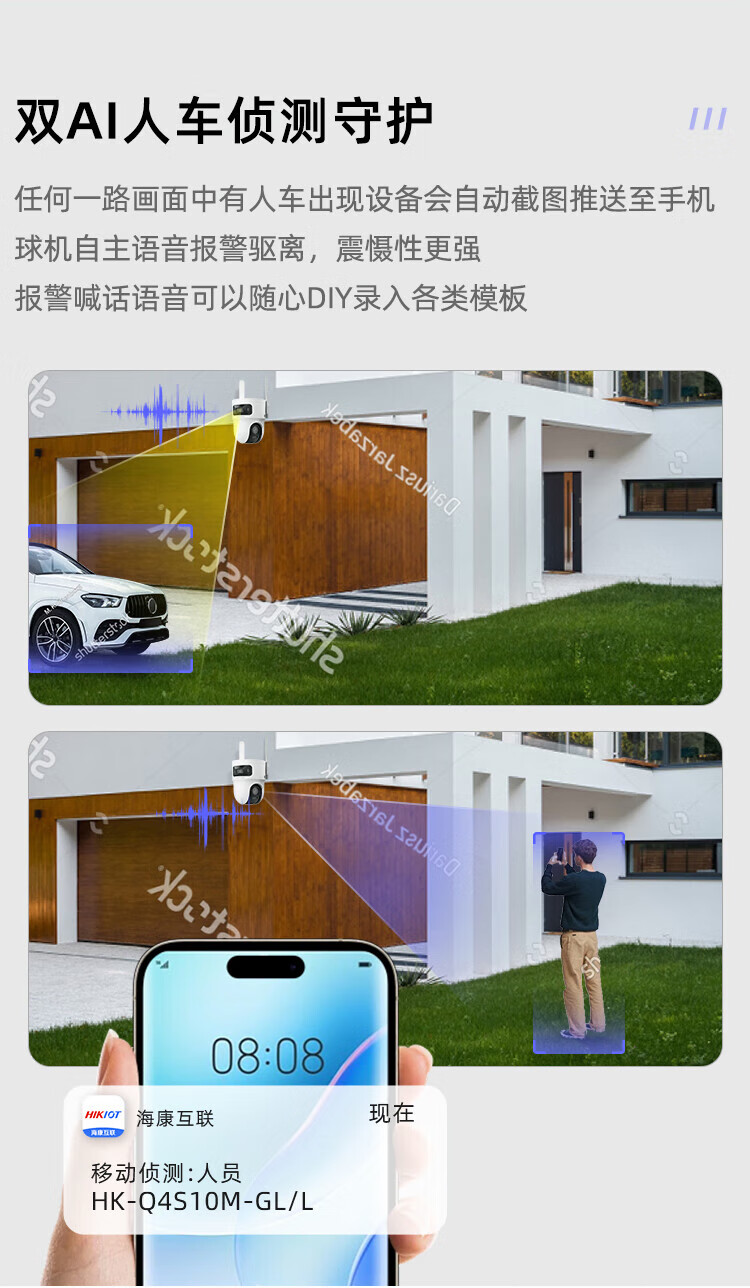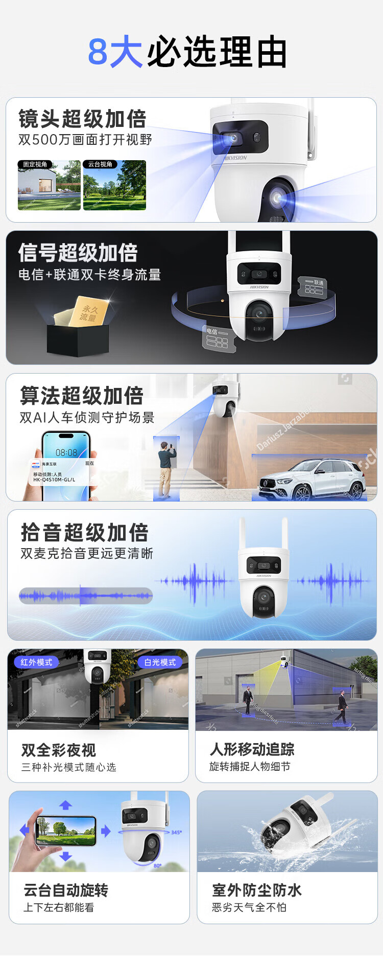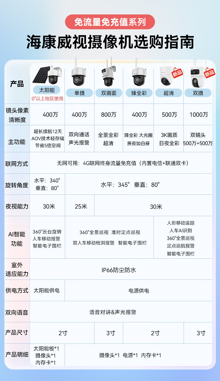 HIKVISION Hikvision 4G solar camera no plug-in monitor lifetime free traffic 360 degrees no dead ends 10 million outdoor voice intercom ball machine 60w30AH free 64g