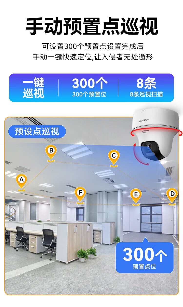 HIKVISION wireless camera home indoor WiFi monitor 360 degrees without blind spots with night vision PTZ rotating mobile phone remote K44H-LWPT