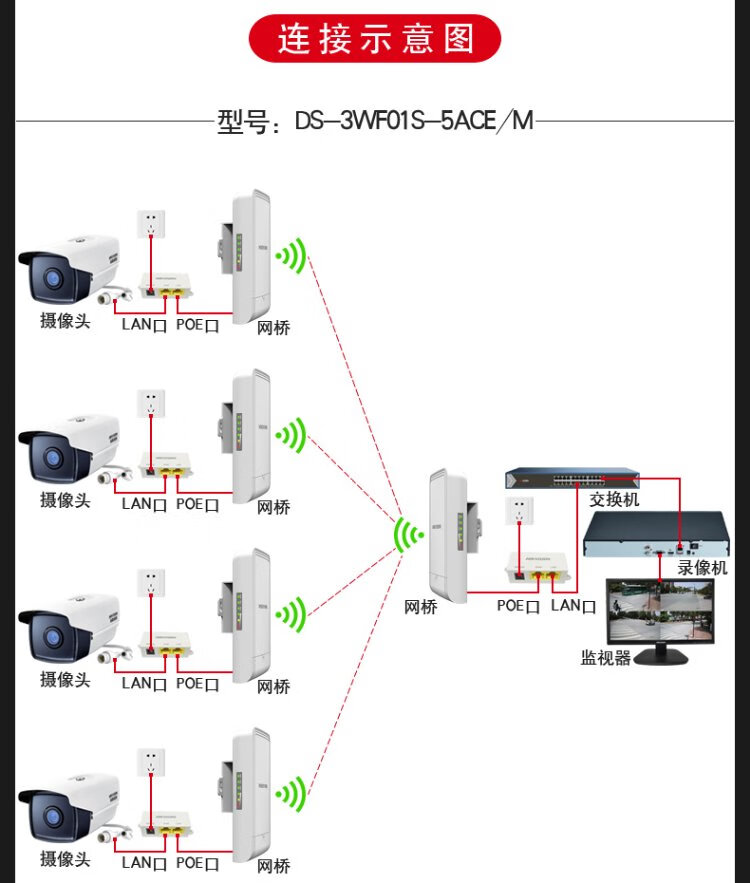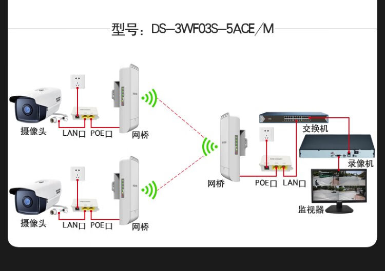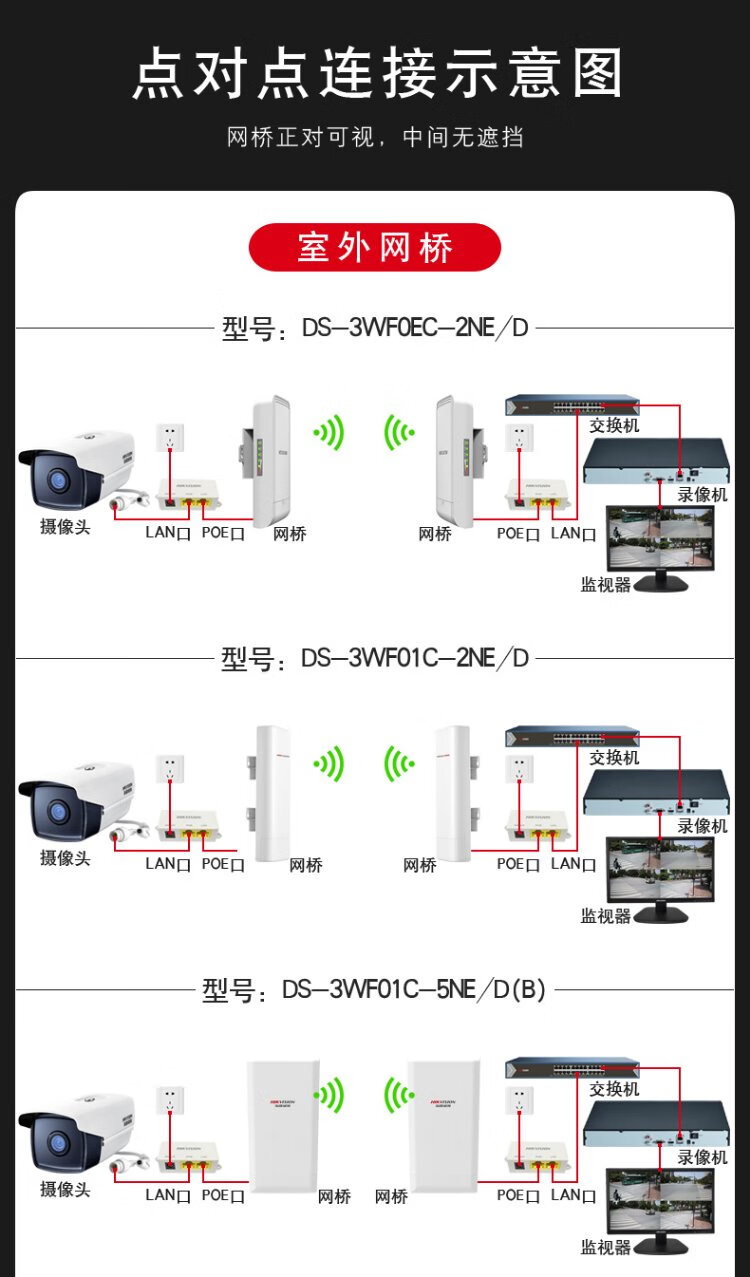 HIKVISION elevator wireless bridge 100 meters 2.4GHz monitoring dedicated bridge pair configuration-free stable anti-interference DS-3WF-XE100-E