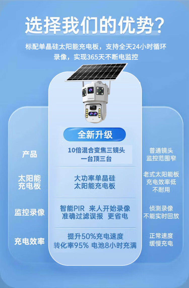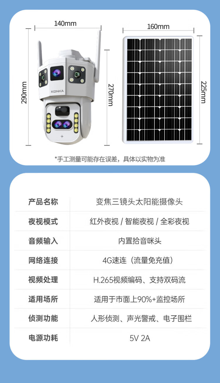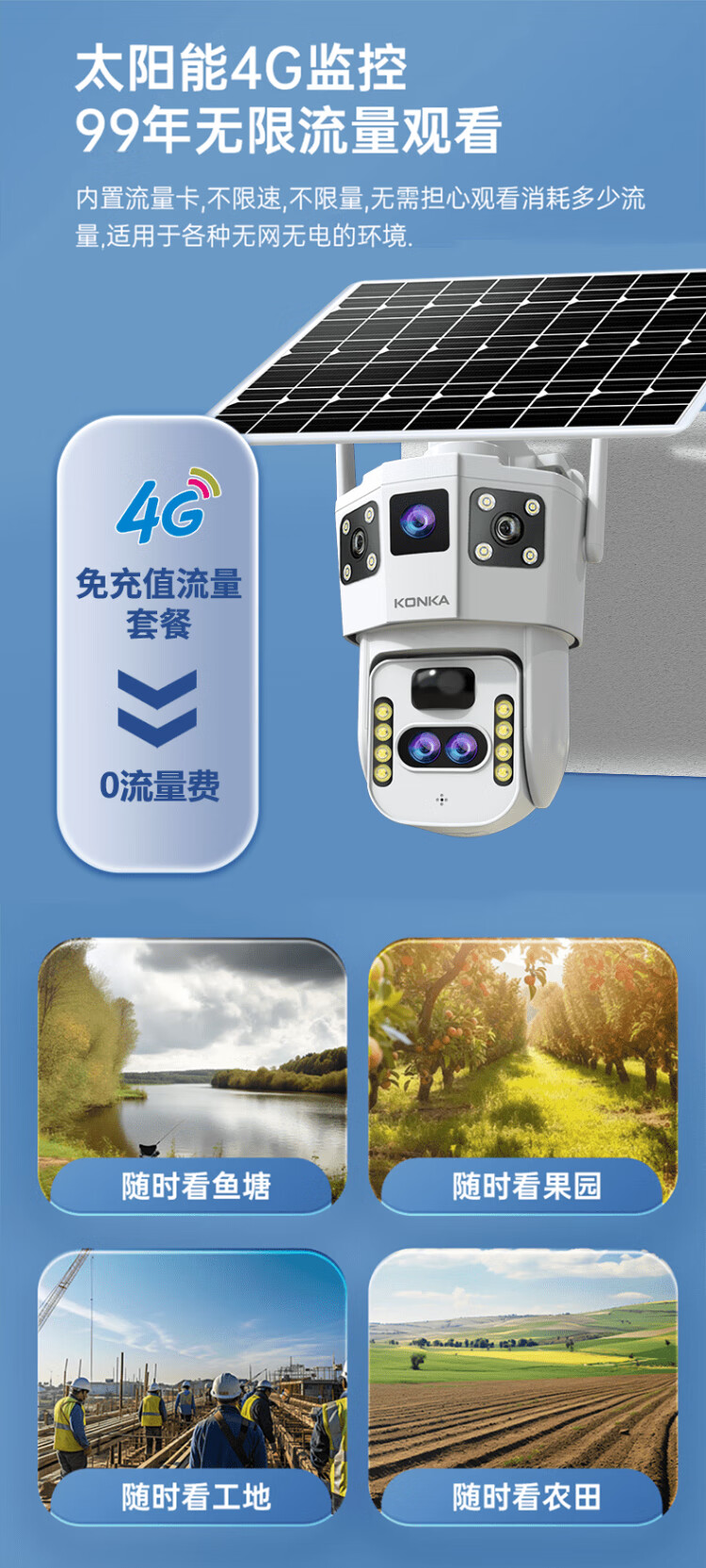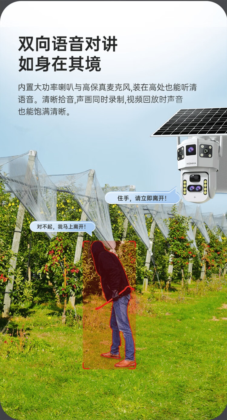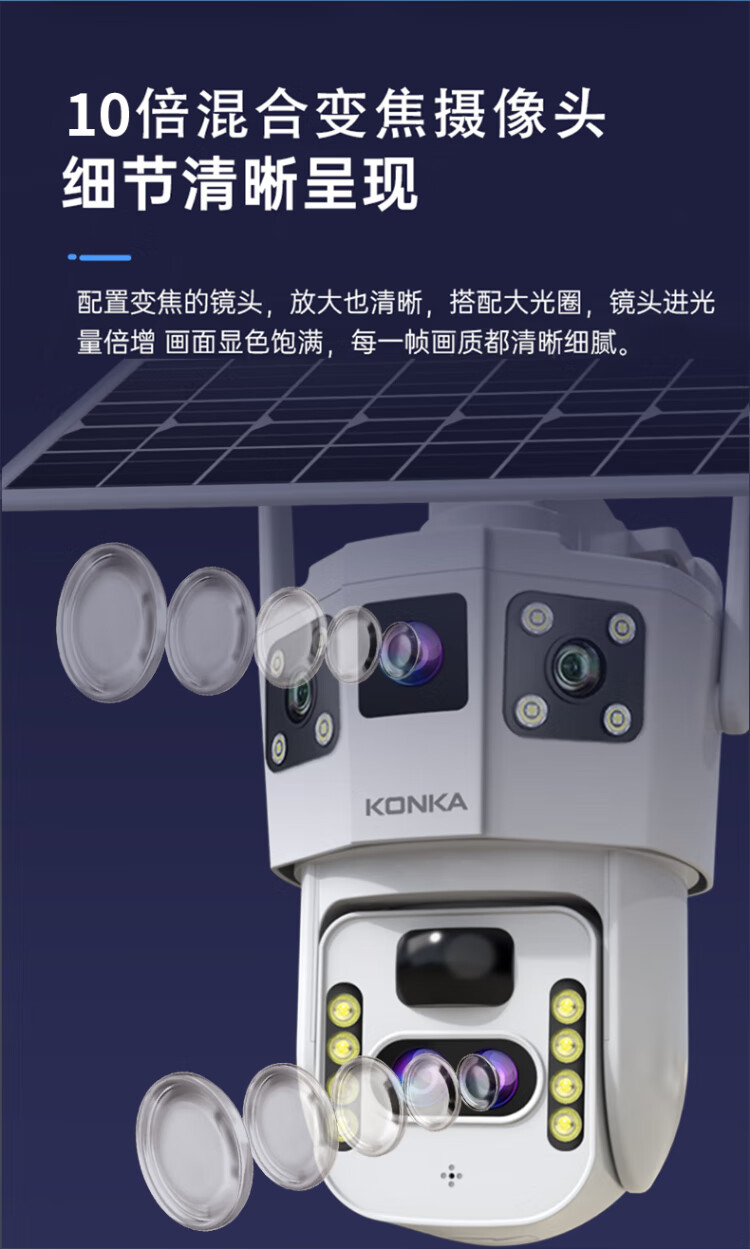 Солнечная камера Konka 4g на открытом воздухе, пожизненный поток без перезарядки, без электричества, без сети, без подключаемого модуля, удаленный мониторинг мобильного телефона, домашний обзор на 360 градусов, без слепых зон, с панорамным ночным видением