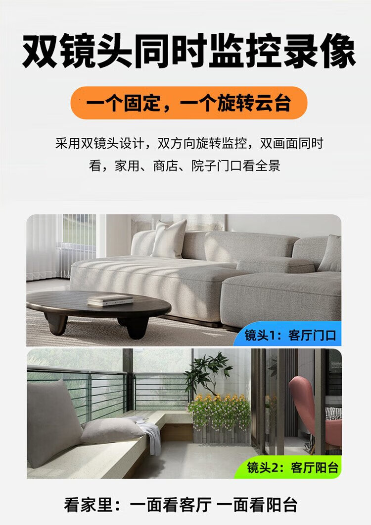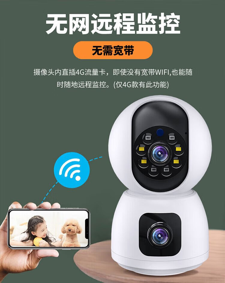 Great Wall 4G-Kamera, lebenslang datenfrei, kein Aufladen erforderlich, drahtloser AI-Monitor für den Innenbereich, 360-Grad-Panoramablick zu Hause ohne tote Winkel, Nachtsicht, Zuhause ohne Netzwerk, keine Verbindung zum WLAN erforderlich