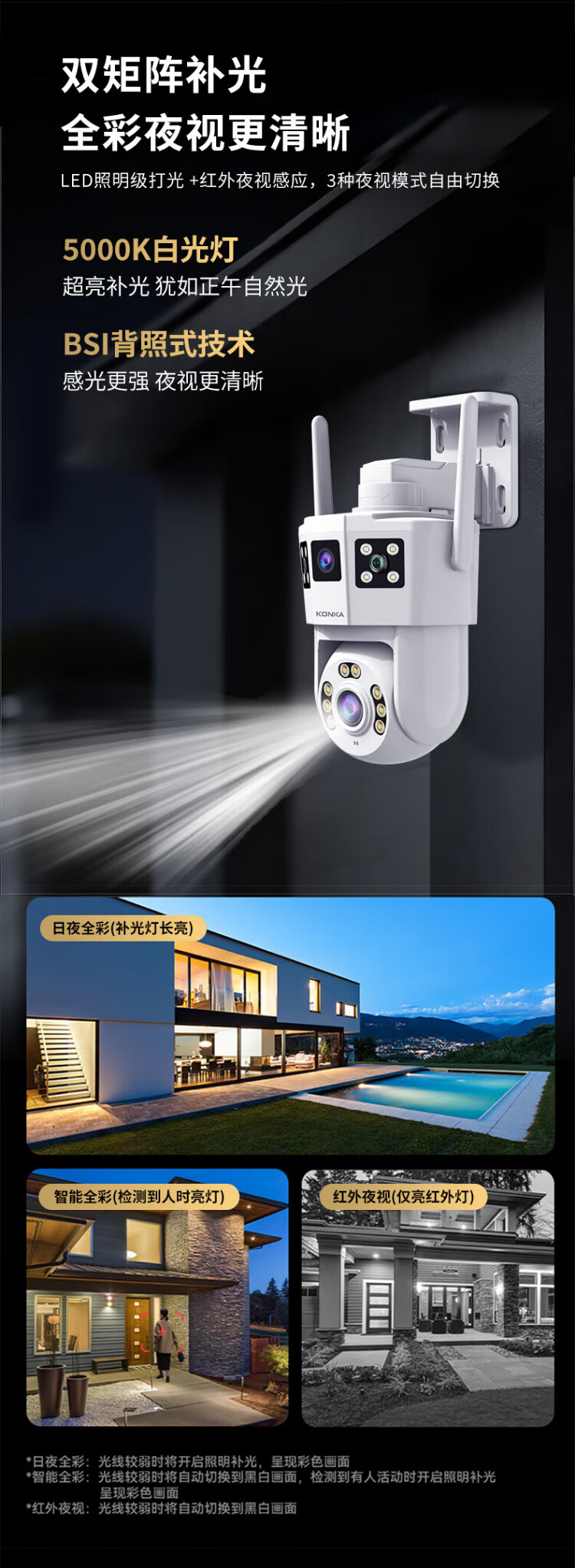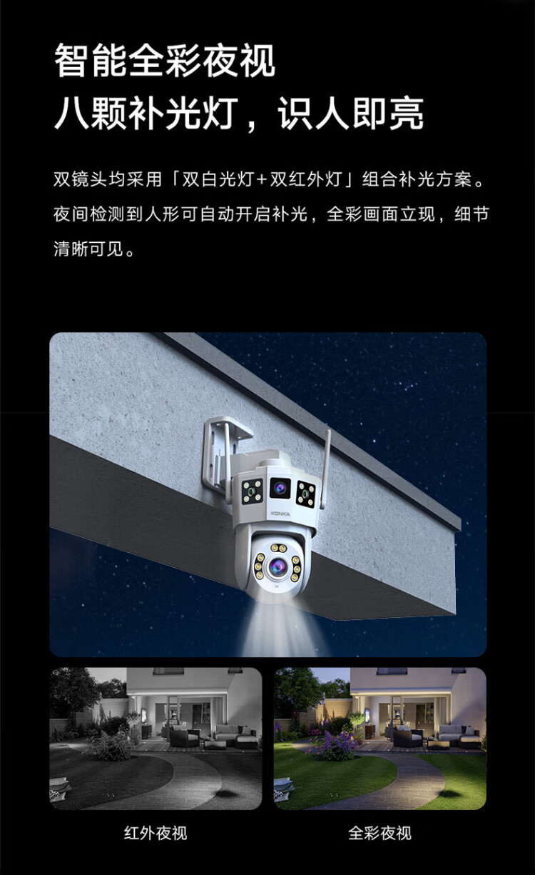 Монитор Konka на 360 градусов без слепых зон с подключением ночного видения Wi-Fi домашняя беспроводная камера наблюдения в сельской местности на открытом воздухе мобильного телефона высокой четкости с дистанционным панорамным вращением на открытом воздухе водонепроницаемый